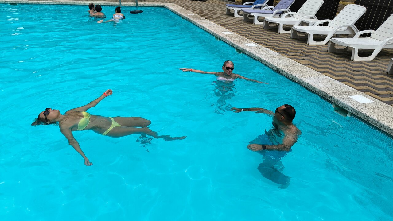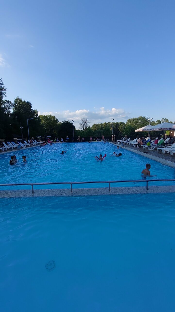 Теплый бассейн, вежливые и культурные официанты, хорошее обслуживание, но в выходные дни ооочень много народу, прям битком.