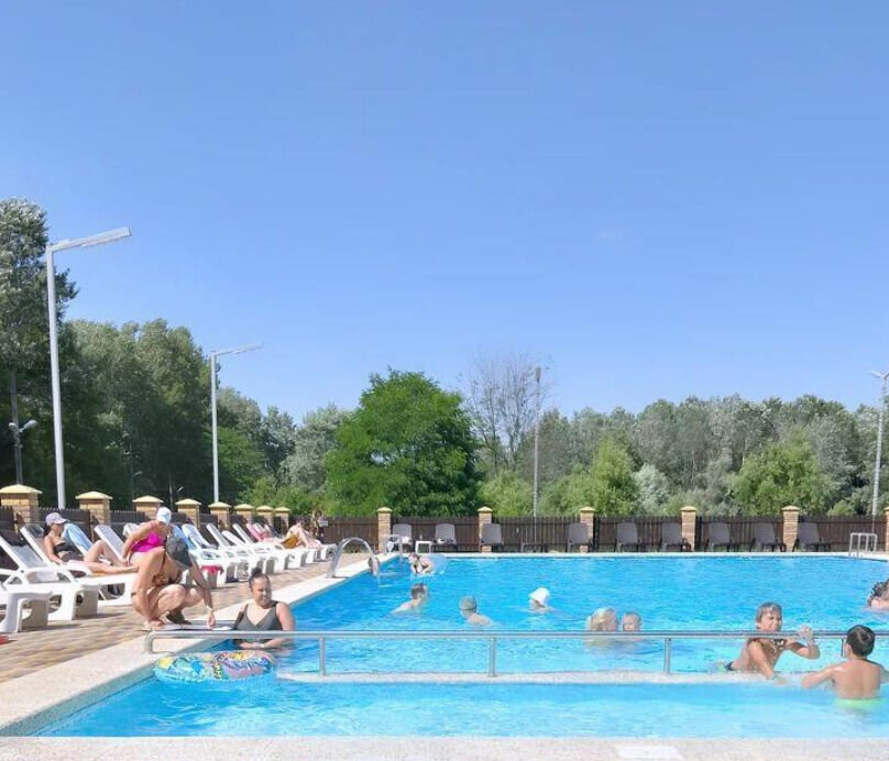 Уютное место для отдыха рядом с домом есть бассейн и баня есть ресторан и стоянка есть беседки