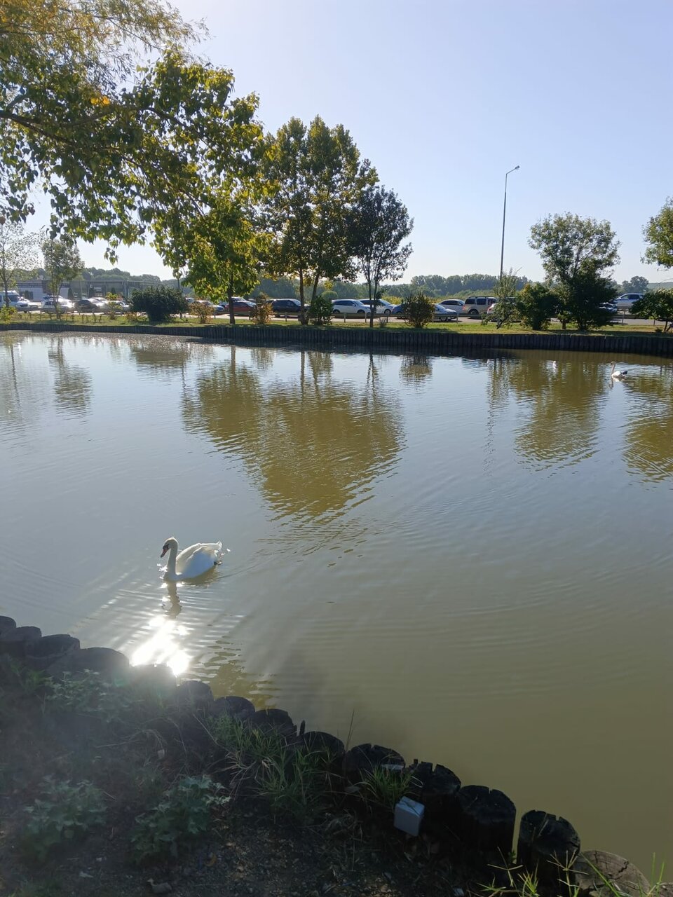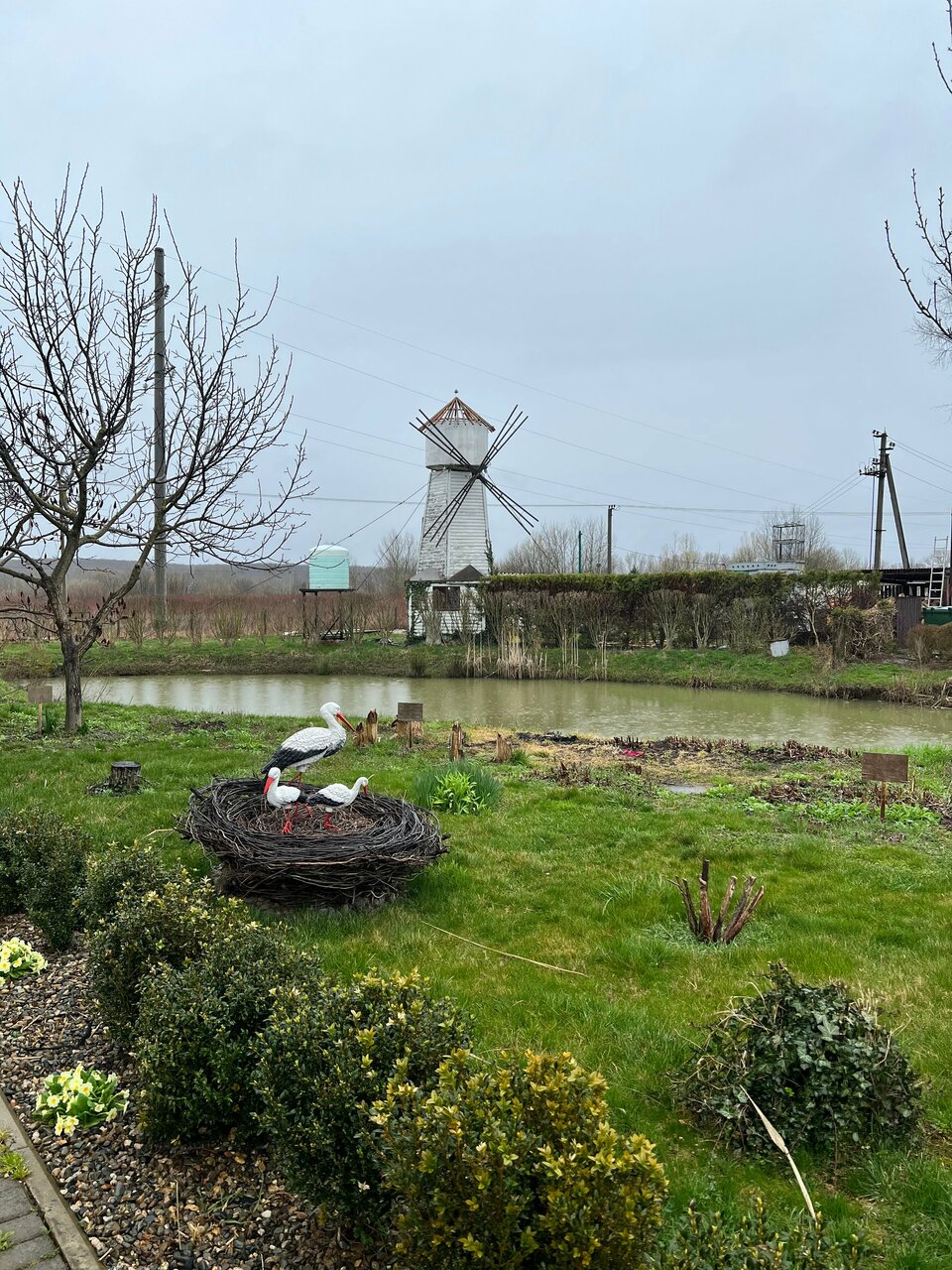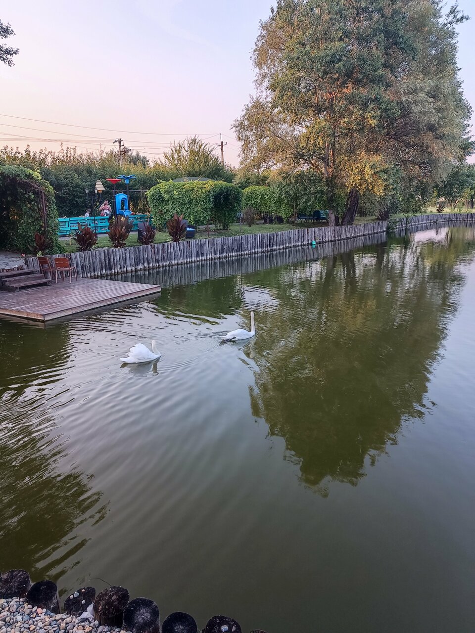 - Красивая природа (пруд, лебеди, цветы).