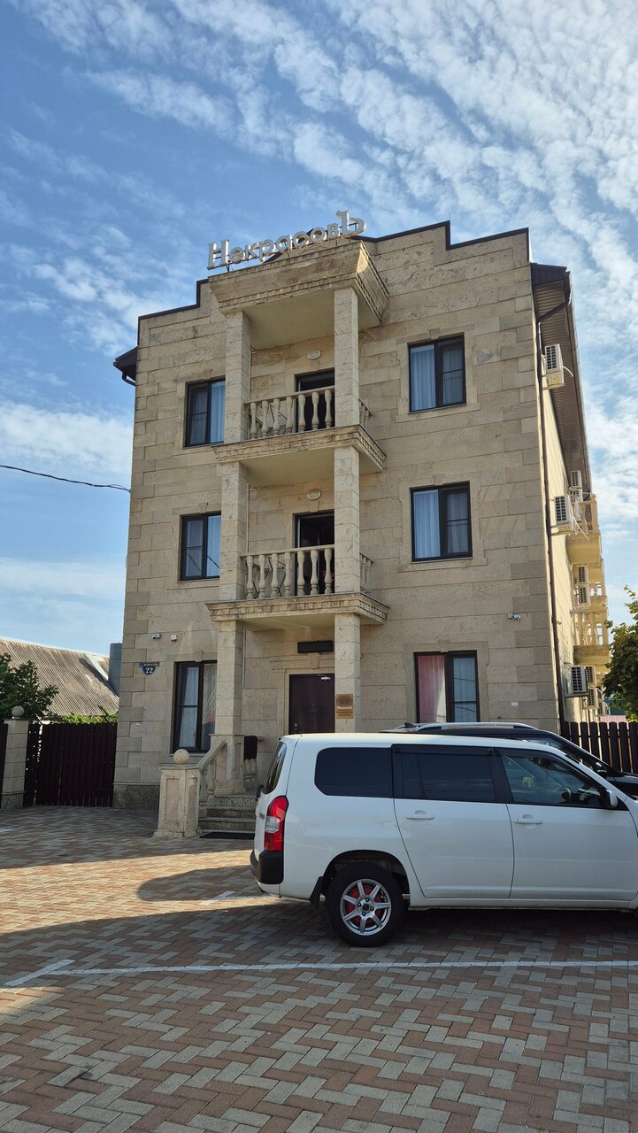 Останавливались на ночёвку по дороге к морю. В отеле всё устроило. Чисто, есть кухня для самостоятельного приготовления пищи, во внутреннем дворе столы, поужинали. На входе всех встречает Попугай Валера. Если вы ему понравитесь, то он с вами поговорит. Прогулялись по городу, попили минеральной воды.