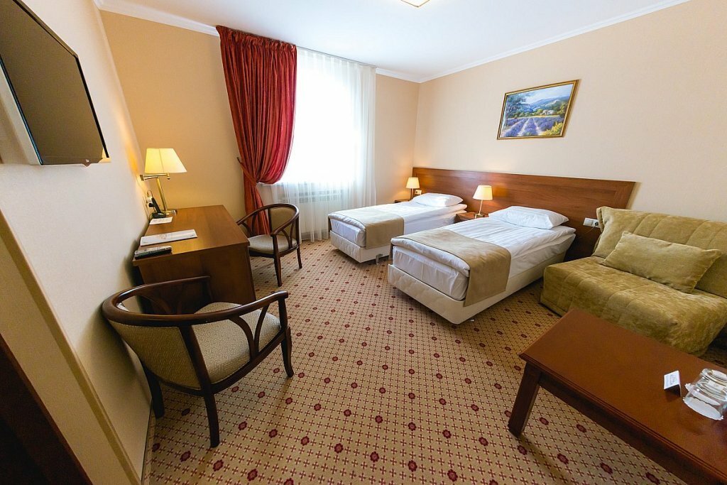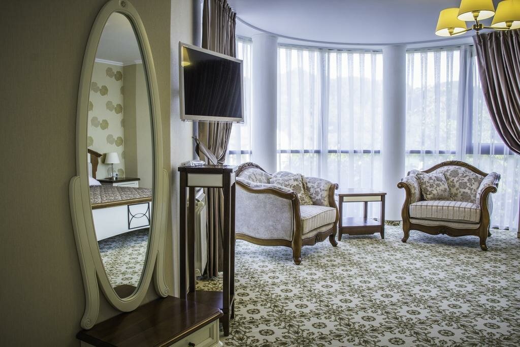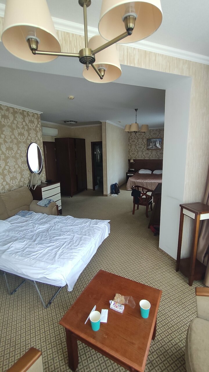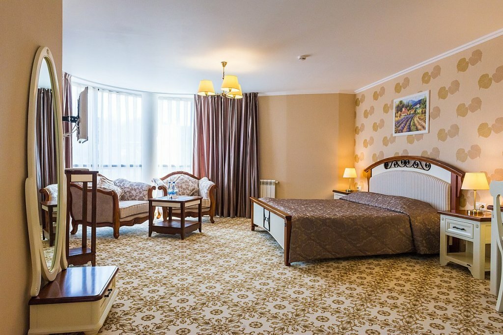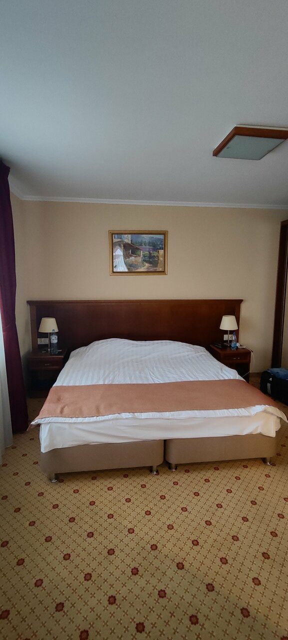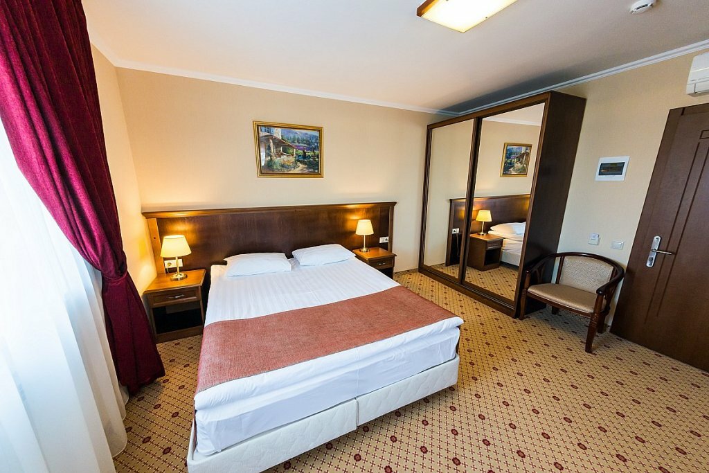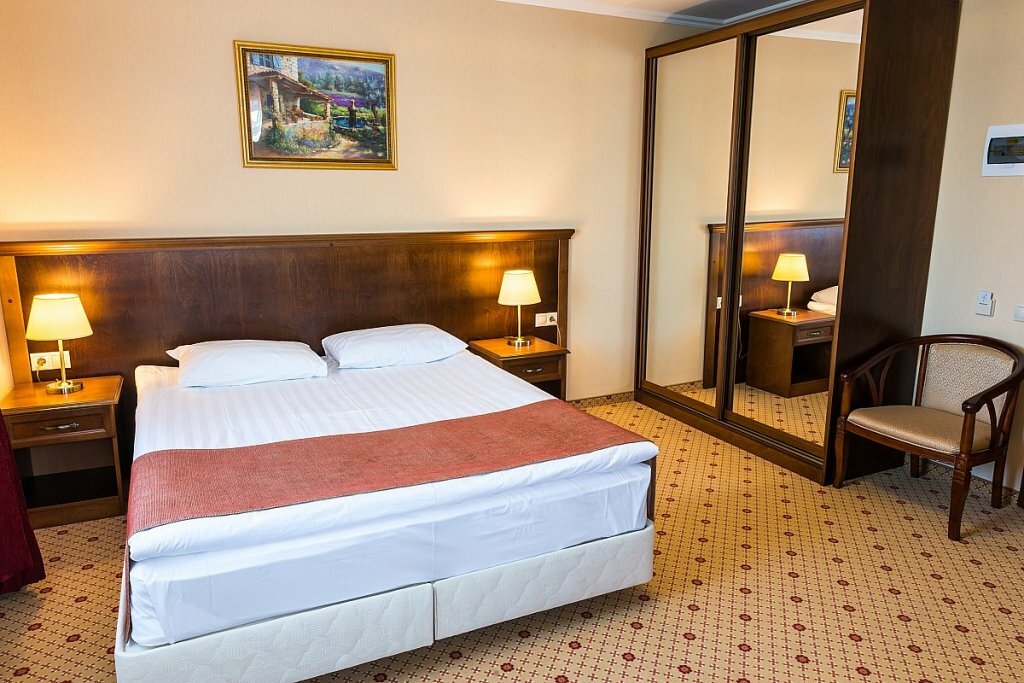 Отличная гостиница,приветливый персонал,всегда готовый помочь.У нас был люкс на 2-м этаже,очень чистый,новая мебель из массива и 2 балкона.Есть всё необходимое(фен,наборы для гигиены,тапки,халаты,чайник с набором кофе и чая ).В ресторане очень вкусно,цены не кусаются и обслуживание на высоте.