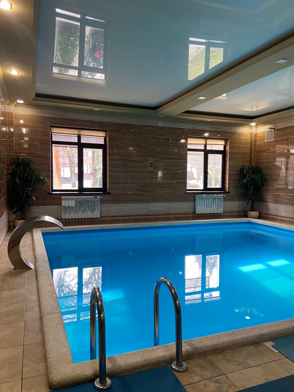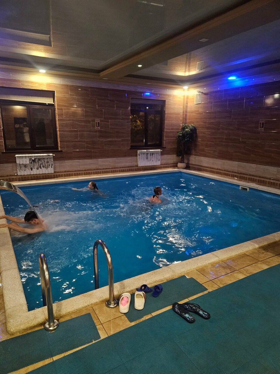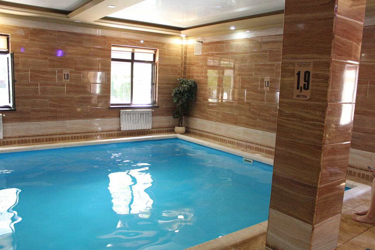 Отличная гостиница, чистота в номерах. Банный комплекс с лежаками и бассейном. Бассейн 1,9 метра глубиной. Детворы из за этого мешающей плавать нет!