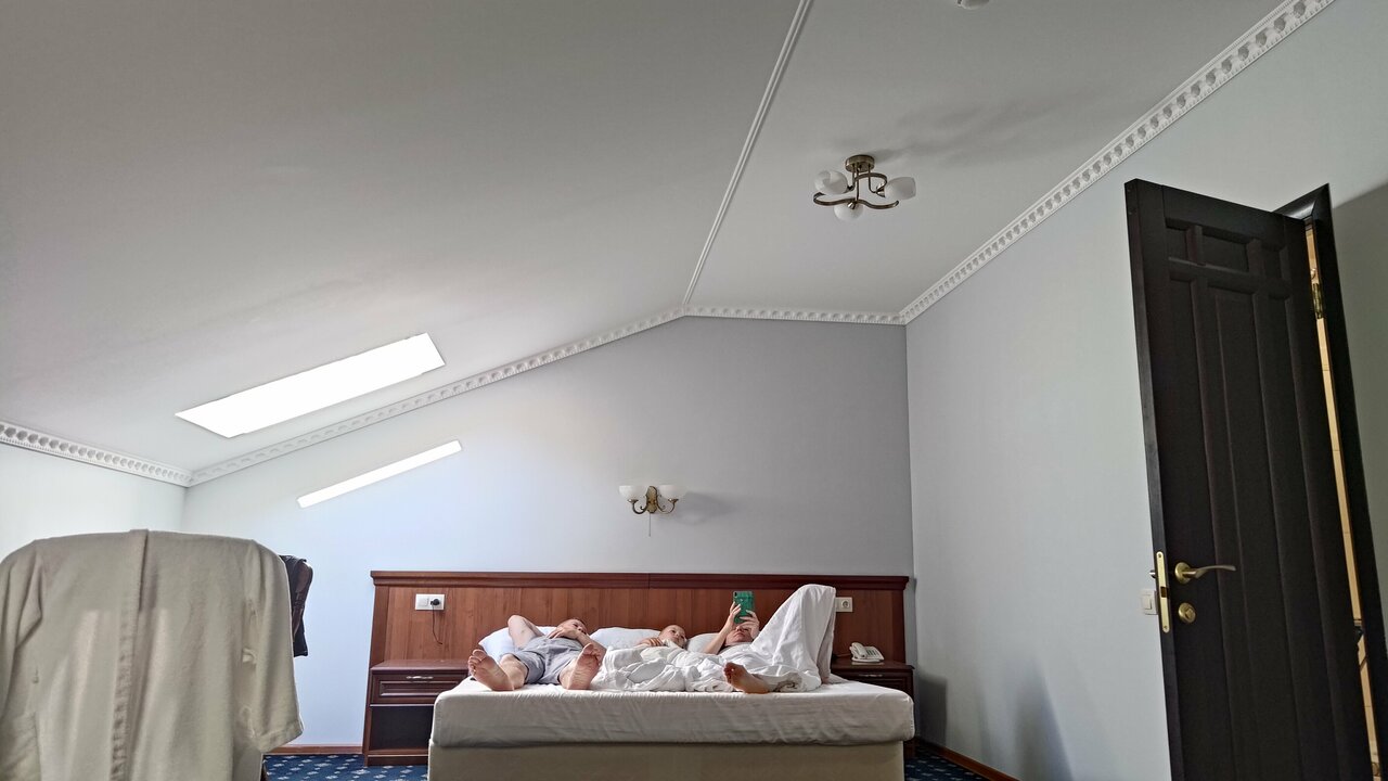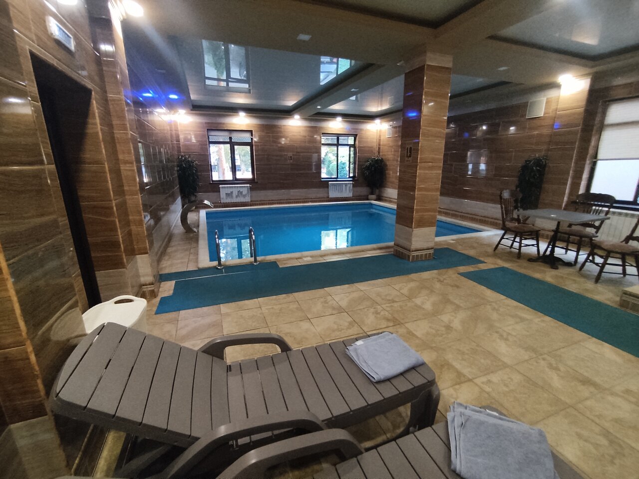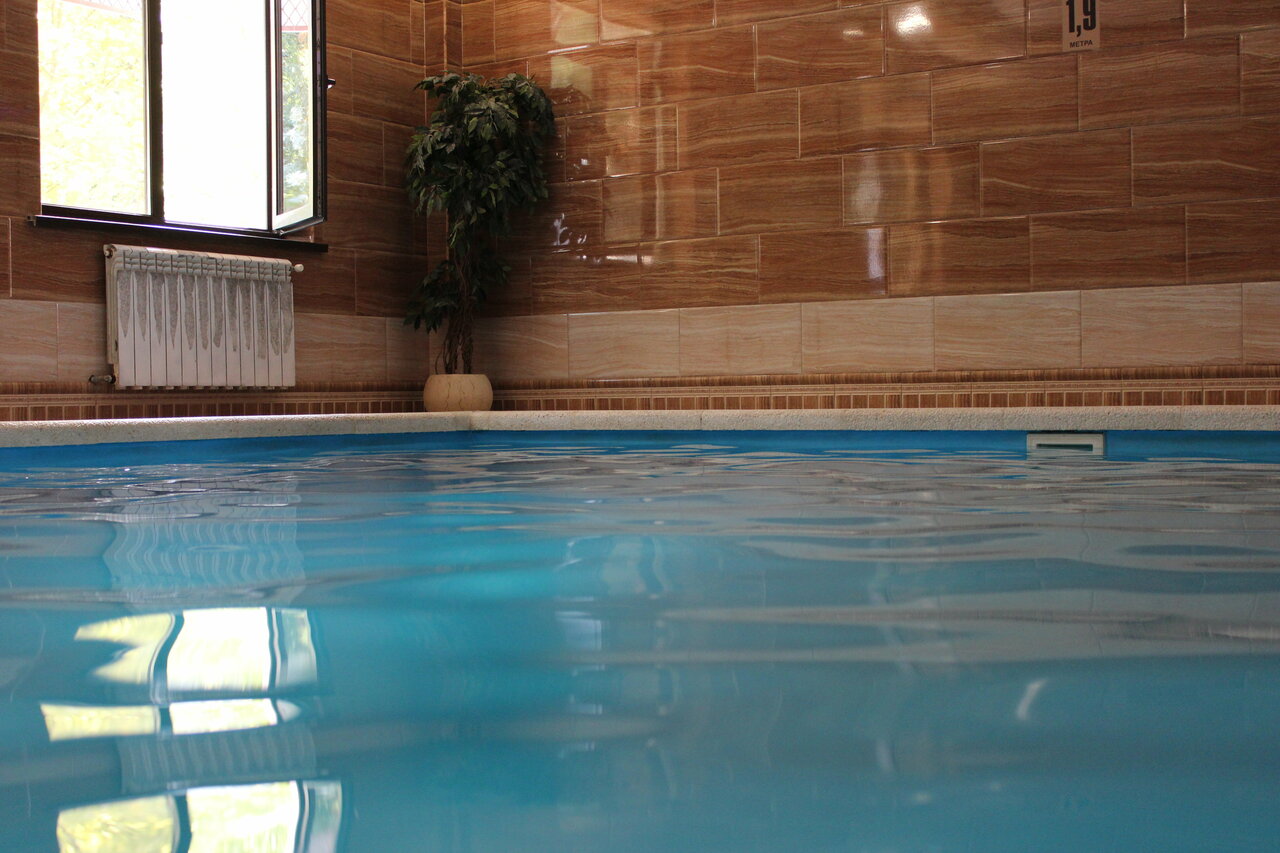 Отличная гостиница, чистота в номерах. Банный комплекс с лежаками и бассейном. Бассейн 1,9 метра глубиной. Детворы из за этого мешающей плавать нет!