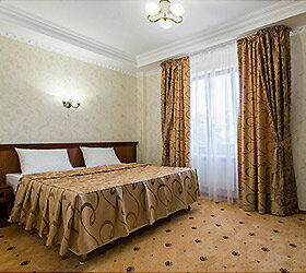 Просторный светлый номер с большой кроватью с высоким матрасом. Площадь номера 50 кв.м. отлично подойдет для размещения 2 взрослых гостей. Возможно размещение 1 дополнительного места. Покрытие пола – ковролин. Номер выполнен в приятных бежевых тонах,