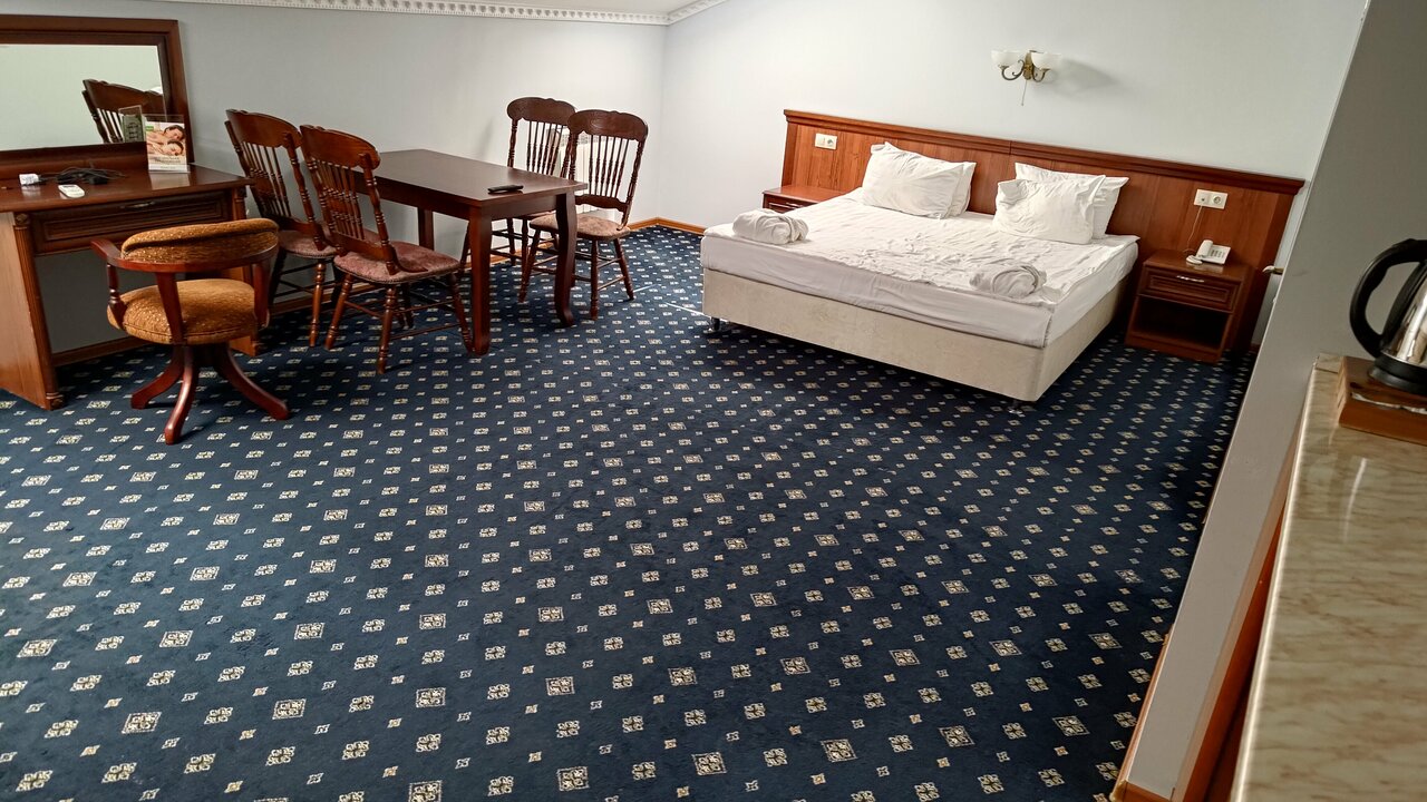 Просторный светлый номер . Площадь номера 22 кв.м. отлично подойдет для размещения 2 взрослых гостей. Возможно размещение на одной 2-спальной или двух 1-спальных раздельных кроватях. Матрас кровати – высокий. Покрытие пола – коврол
