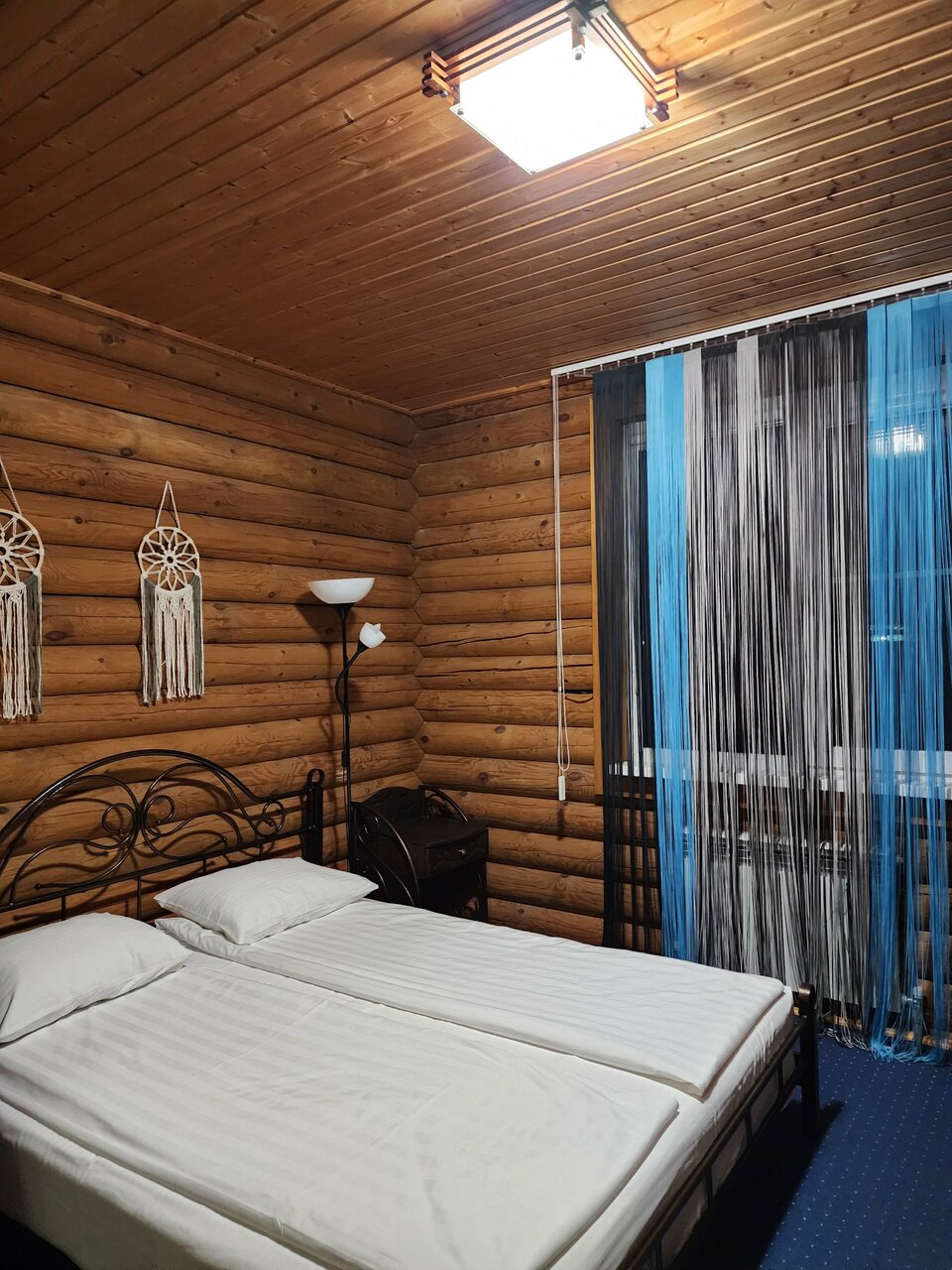 Отличное расположение и удивительная атмосфера делают его прекрасным вариантом как для семейного отдыха, так и для отдыха в компании друзей. Причем, здесь есть все, чтобы каждый гость чувствовал себя комфортно и уютно. На территории гостиницы красиво, атмосфера спокойствия пронизывает каждый уголок. Русская баня на дровах с вениками и большой чан на улице — это настоящая находка для любителей. Номера в домах из сруба создают особое представление о комфорте и тепле. Общая кухня оборудована всем необходимым, чтобы каждый гость мог приготовить что-то вкусное или просто провести время в компании друзей за чашкой ароматного кофе. Также имеется мангальная зона для любителей приготовления шашлыков, а беседки и детская площадка добавят удобства для приятного времяпровождения с семьей. В пешей доступности находятся супермаркеты, парк, а также канатная дорога, предлагающая захватывающие виды и новые впечатления. Персонал приветливый, внутри чисто и тепло