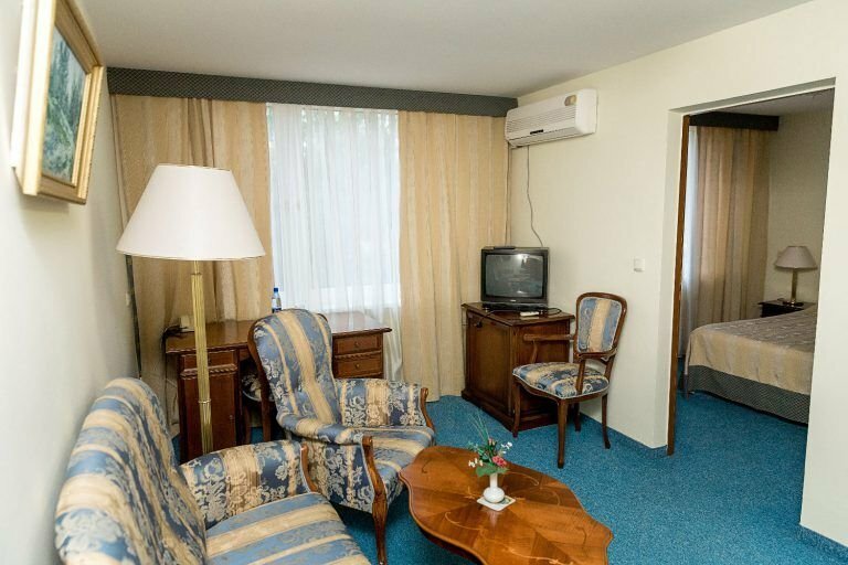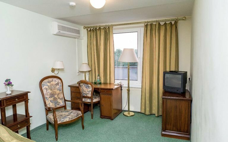 Гостиница приятна,ощущается,что перемещаешься во времени к курортным советским временам. Персонал не навязчивый,вежливый. Номера не удалось посмотреть. Все заняты. Достался стандарт. В номере места не много. Своя душевая и туалет. Присутствует кондиционер! Что было очень здорово,так, как я был в коммандировке летом,и жара стояла во всю за 30 °. Мебель меня заинтриговала,вся старая,антикварная! Свой ресторан на территории. Готовят вполне приемлемо,правда порции не большие. В стоимость номера входит завтрак,меню разнообразно. Вообщем,подведу итог,гостиница тихая,приятная. Мне,приехавшему в командировку большего и ненужно было. Самое необходимое присутсвовало. Конечно не пятизвёздочный отель,но в целом для служебных поездок самое то!