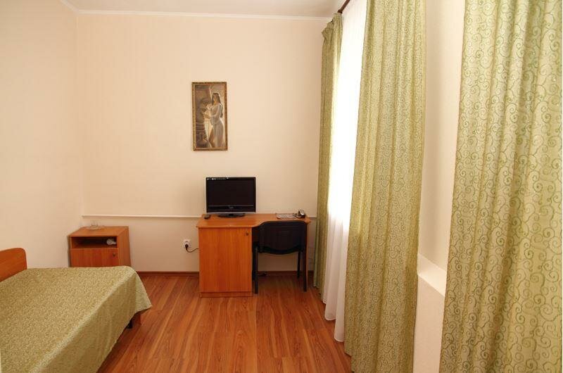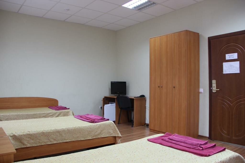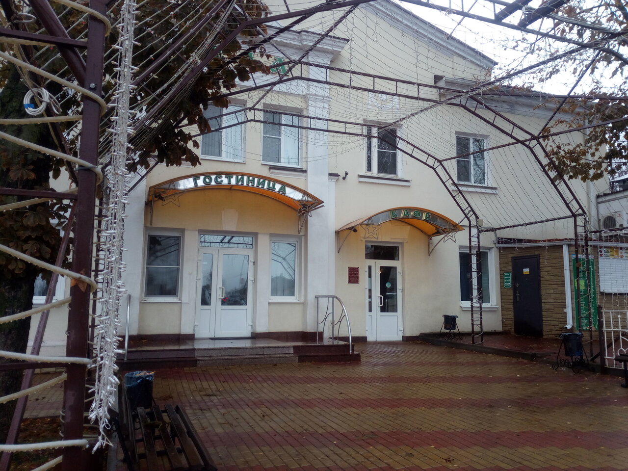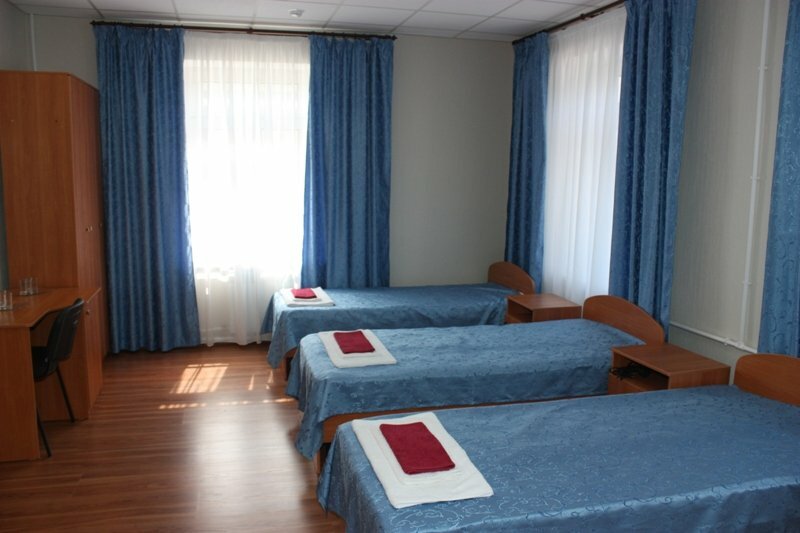 Гостиница построена в советские времена,о чём повествует табличка на входе. Номера приемлимых размеров, одноместные,двухместные и даже 4-х местные. Ежедневная уборка, смена полотенец. В номерах есть всё необходимое:телевизор, холодильник,душ,туалет. При гостинице имеется кафе где вкусно готовят Персонал отзывчивый,и готов помочь на вопросы проживающих