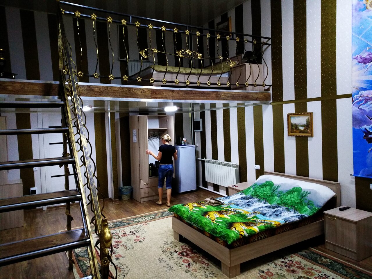 Травматичная лестница на 2 этаж, отделка в номере пластиком. Но как вариант без выходного положения. Преклонить голову на ночь можно. Большой плюс отзывчивый хозяин. Помог добраться до отеля. К сожалению мы заблудились.