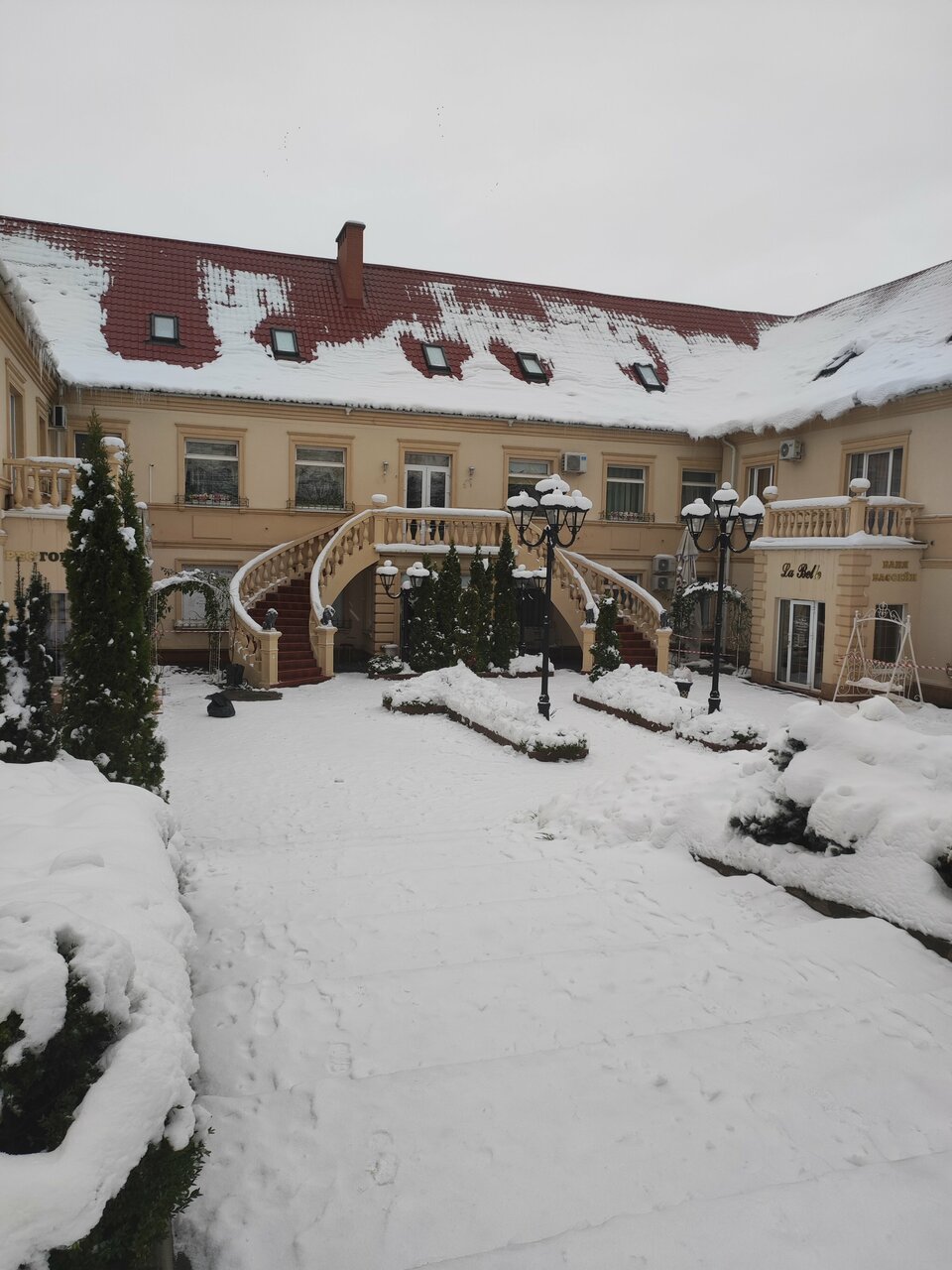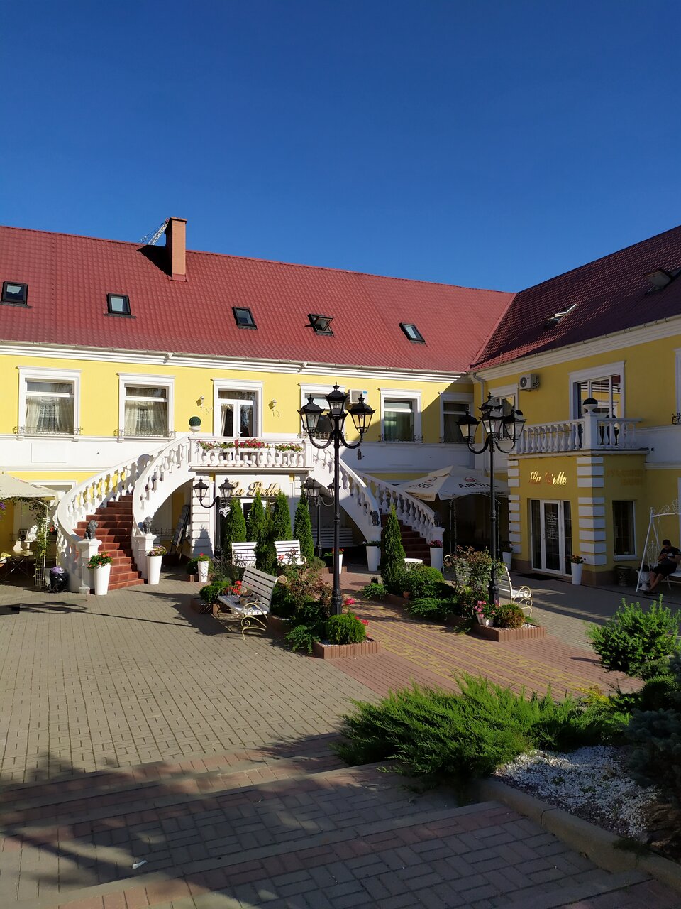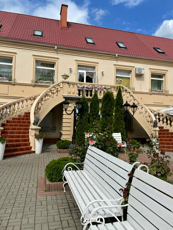 Очень много плюсов у гостиницы. Хороший экстерьер и интерьер. Вкусно готовят. Но был вопиющий случай. Отель приглашает в том числе и молодых спортсменов — футболистов. Случилось так, что у двоих ребят был день рождения. Обеденный стол накрыли в углу зала торжеств. Праздновали с выносом торта. Персонал испортил праздник. Делали детям замечания, что они помыли полы, вечером будет свадьба. Чтобы сидели на своих местах и не вставали. Какая-то престарелая тетя за барной стойкой сказала, что не даст нож (нарезать торт) из принципа. Это все в присутствии хозяйки заведения, которая сохраняла нейтралитет. В общем, персонал местами сволочной. Не гостеприимный. Хочу отметить работу садовника. Сад просто великолепный. Отличные номера. Все чистенько. На первом этаже не работал мужской туалет, но это не испортило впечатлений.
