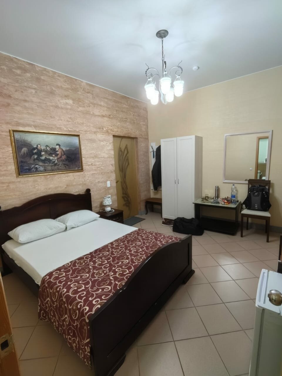 Тот случай, когда мы рассчитывали на 2*-хзвездную общагу, а попали во дворец. Большой светлый красивый номер, с шикарной мебелью, обалденной люстрой, трюмо и пуфиком. Отличный телевизор, потолочный кондиционер, хорошо оформленная ванная комната, кипяток льется по щелчку зимой… Жене особенно понравились композиции из искусственных цветов буквально на каждой горизонтальной поверхности, сделаны с большим вкусом… Тишина, большая парковка. Приветливый персонал. Хорошо оборудованая кухня, готовь что хочешь… Немного маловат континентальный завтрак, но в целом голодными мы не остались. Очень хороший отель. Теперь, если в Гусь, то только в этот отель.