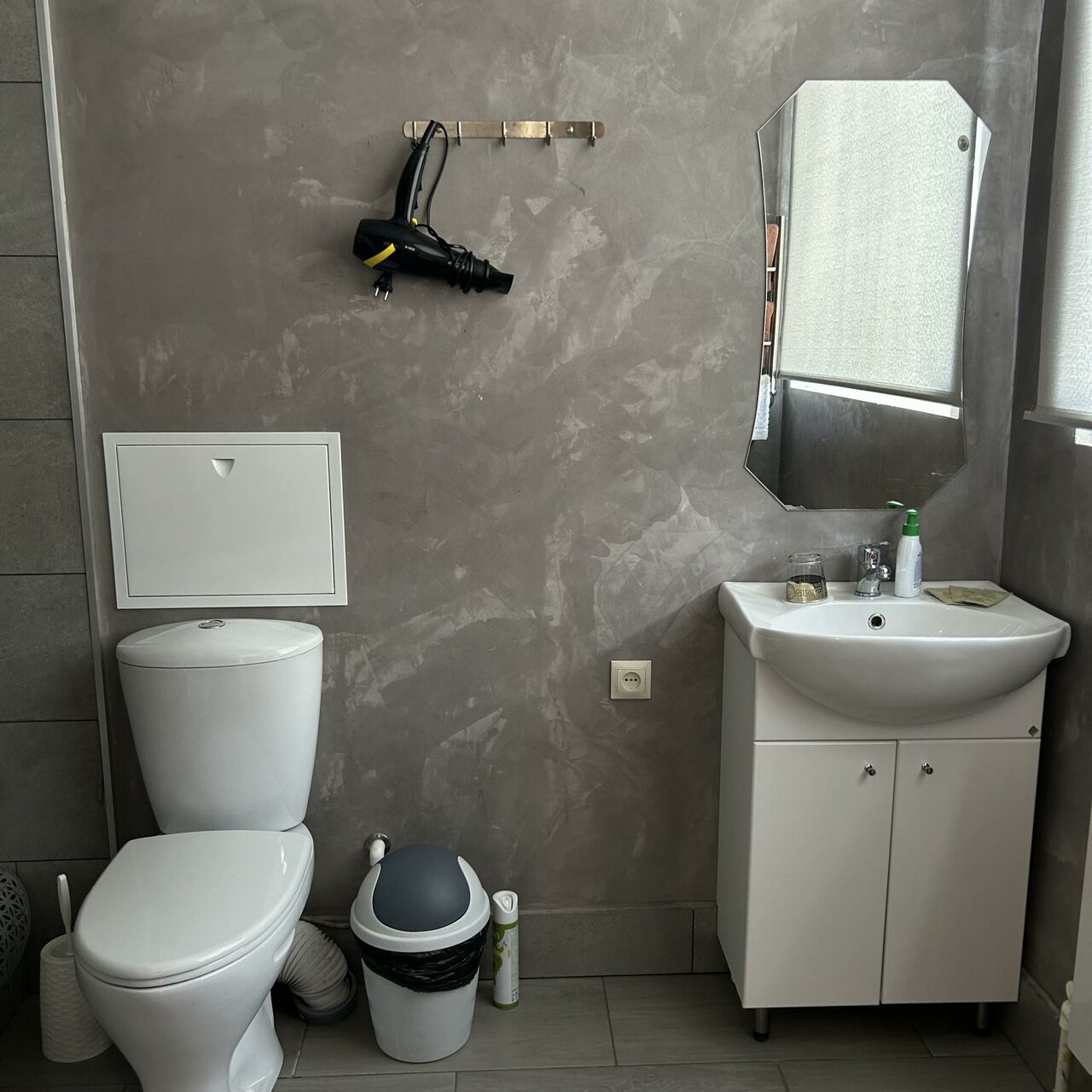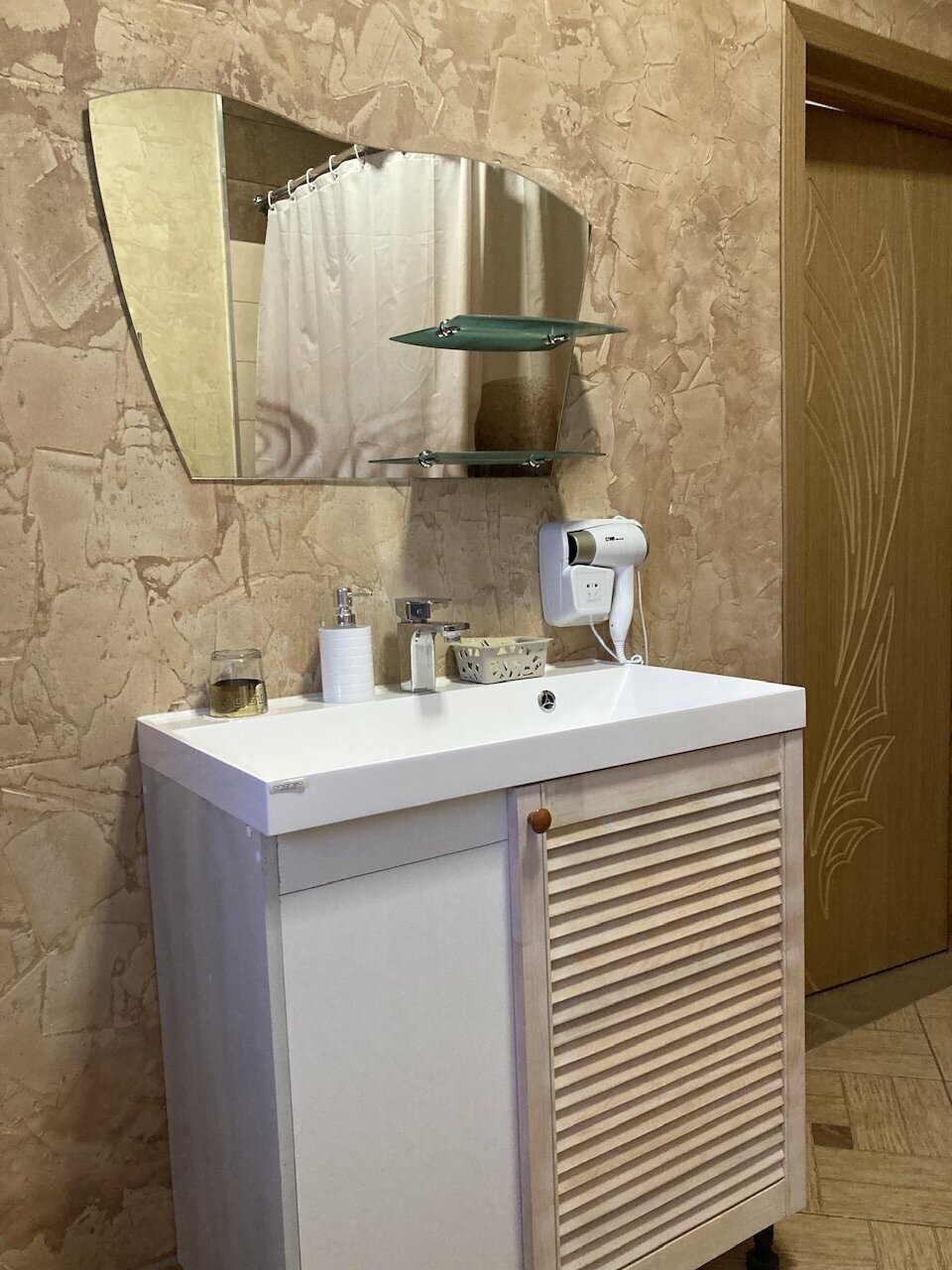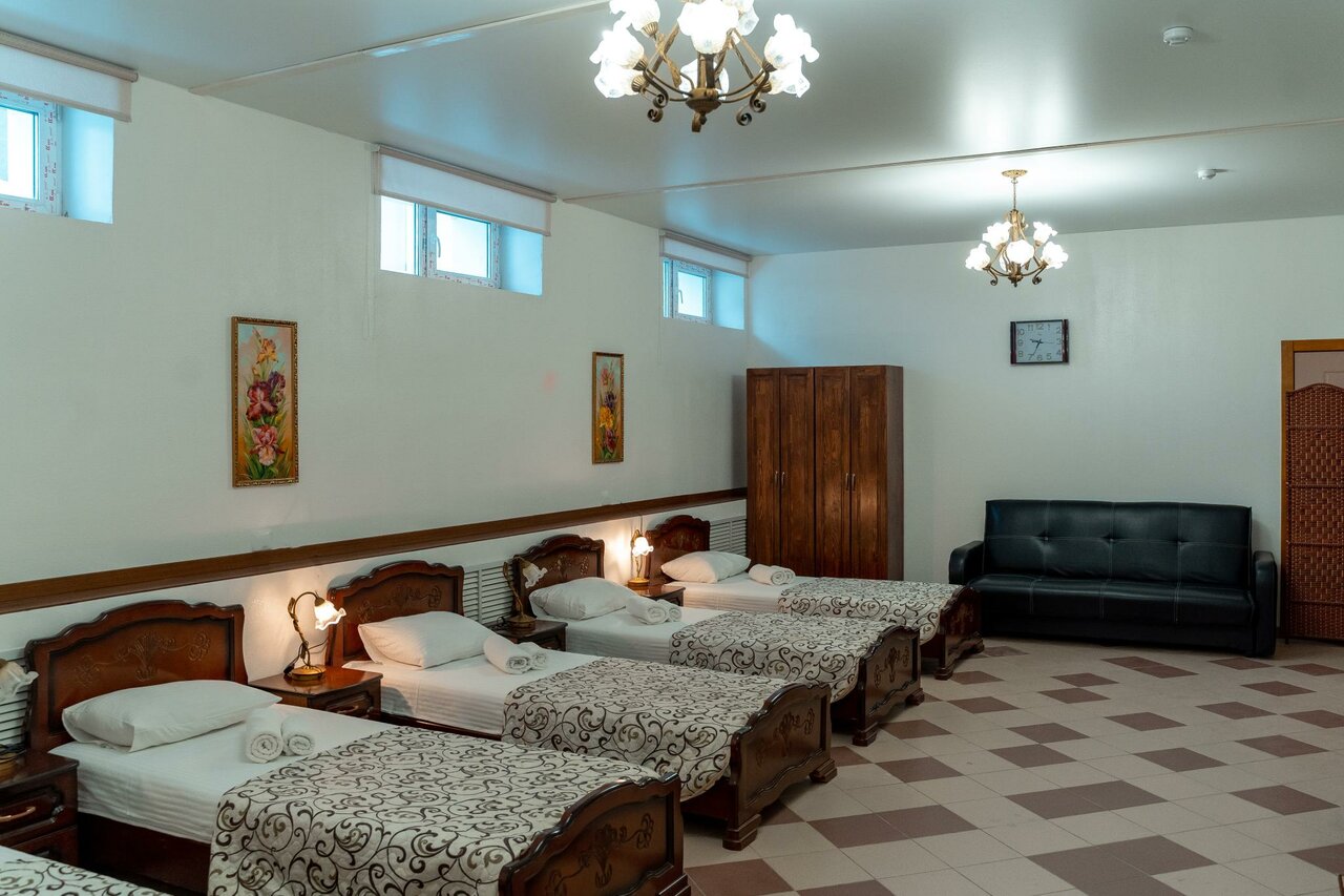 Обложка фото не соответствует номеру на 7-8 гостей. Гостиница находится в промзоне. Мы жили одни, была кухня и 2 туалета, душ, правда средств гигиены не было. Ремонт наверно только завершился, поэтому на полу была строительная пыль, мы не разувались. В ценом норм для бюджетного варианта, если только переночевать.