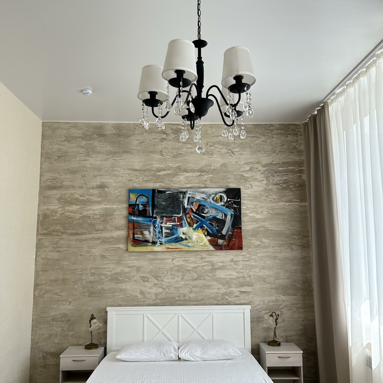 Эти выходные мы с семьей провели в Г -Хрустальном ,решили остановиться в новой Гостинице и не пожалели об этом . Очень удобно ,так как мы отдыхаем с детьми . Дети в одной комнате на комфортном диване ,мы в просторной спальне. В номере все необходимое есть. Туалетные принадлежности белоснежное белье и полотенца ,чистота и комфорт. Ещё мне понравилось ,что гостиница не большая , по этому тихо и спокойно. Чайник ,микроволновка в коридоре. До центра на такси 3 мин . Рядом «Лесная сказка» тропинки с рукотворными деревянными персонажами сказок! Что очень понравилось детям ! Бронировали номер на 3 дня среди недели и подучили приличную скидку. За 2 х комнатный номер 50%скидка Персонал приветливый,отзывчивый . Убирали в номере по первому требованию. Немного жаль,что нет завтраков ,но есть информация по доставкам . Большой телевизор, Wi-Fi ,огромные светлые комнаты . Вообщем своим отдыхом мы остались довольны.