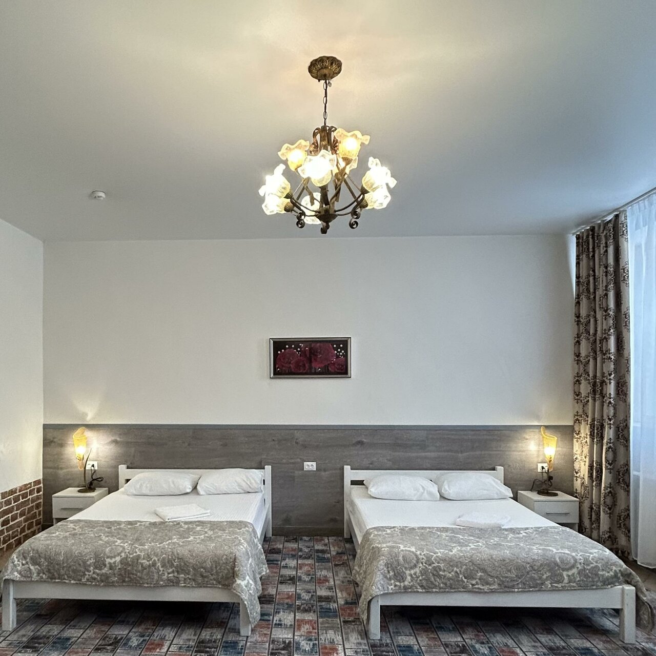 Не знаю по каким критериям оцениваются звезды отелям, но я поставил бы минимум 4. Очень доброжелательный персонал, чистота, номера хоть и стандарт не хуже люкса в других отелях, всё необходимое в наличии, большая стоянка, завтрак хоть и скромный, но он есть. Мы любим путешествовать и останавливались во многих отелях, но этот нам понравился больше всех. Очень всём рекомендую. И ещё очень порадовала общая кухня и тишина.
