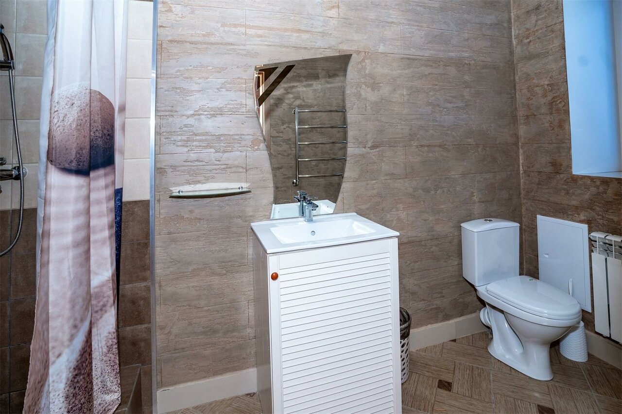 Номера большие, везде чисто. Душевая кабина широкая!!! Ура — есть большое зеркало в номере. На кухне есть все необходимое, чтобы приготовить покушать. Рекомендуем! Завтрак континентальный, то есть на один зубок, но об этом написано на сайте.