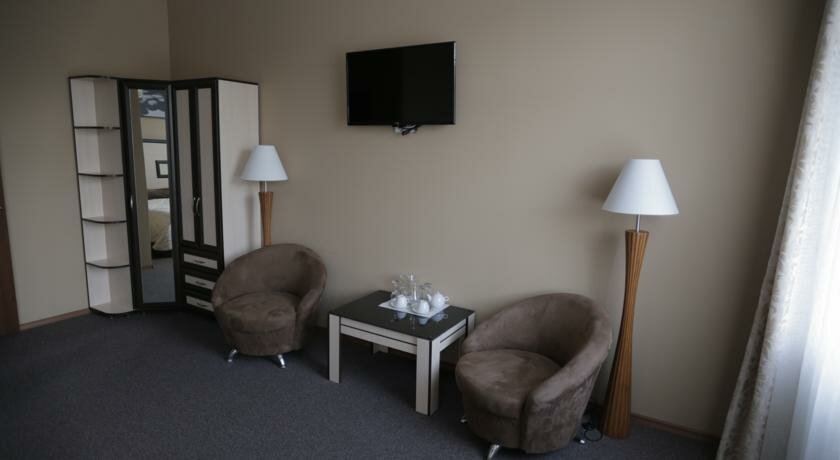 Гостиница предлагает комфортабельные номера (3 звезды) от 1200 ₽ за ночь с санузлом, холодильником, телевизором, феном и бесплатным Wi-Fi. В некоторых номерах есть камин, халаты и тапочки. Доступны услуги трансфера, проката велосипедов, камера хранения и конференц-зал.