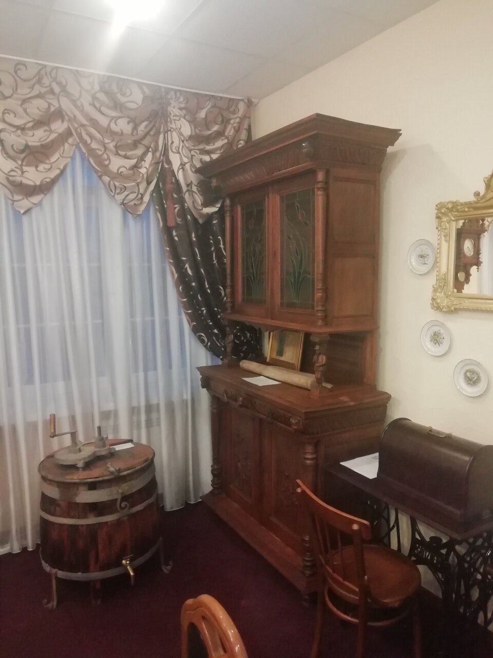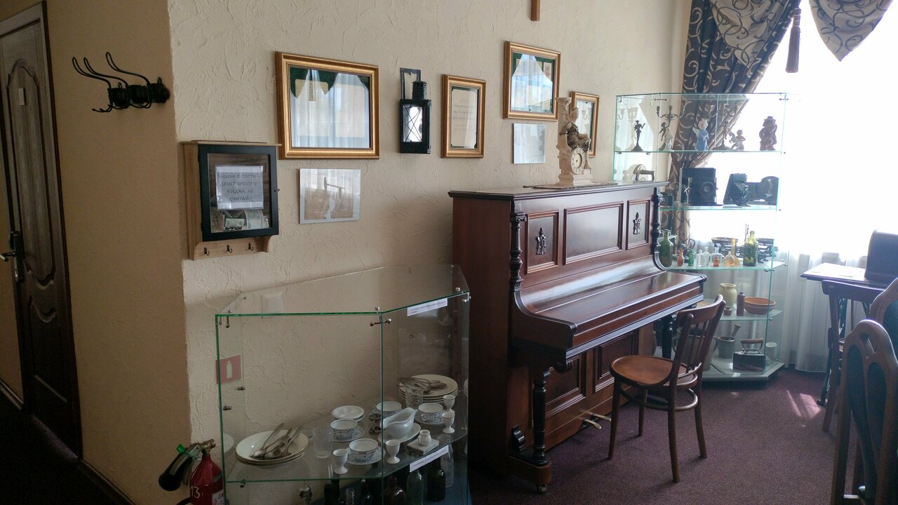 - Чистое бельё, халаты, тапки.; Уютное место.; Атмосферное оформление (музейные экспонаты).; Хорошее расположение (центр города).; Отличная кухня.