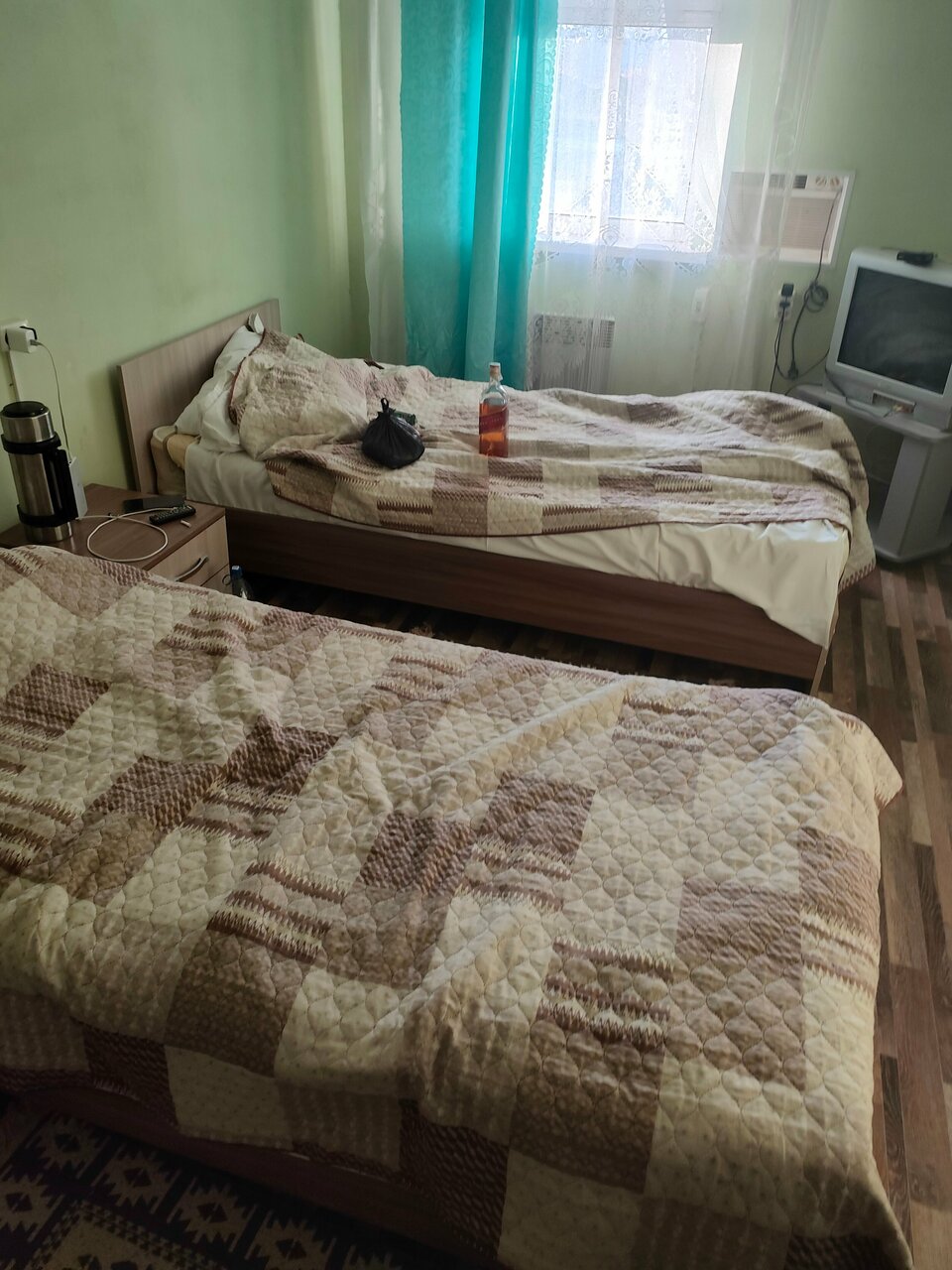 Хорошая гостиница, всё необходимое есть. Душ туалет, холодильник, чайник, отдено есть кухня где можно разогреть еду. Кровати чистые, без клопов и тараканов. Цены приемлемые 1250 — ночь.