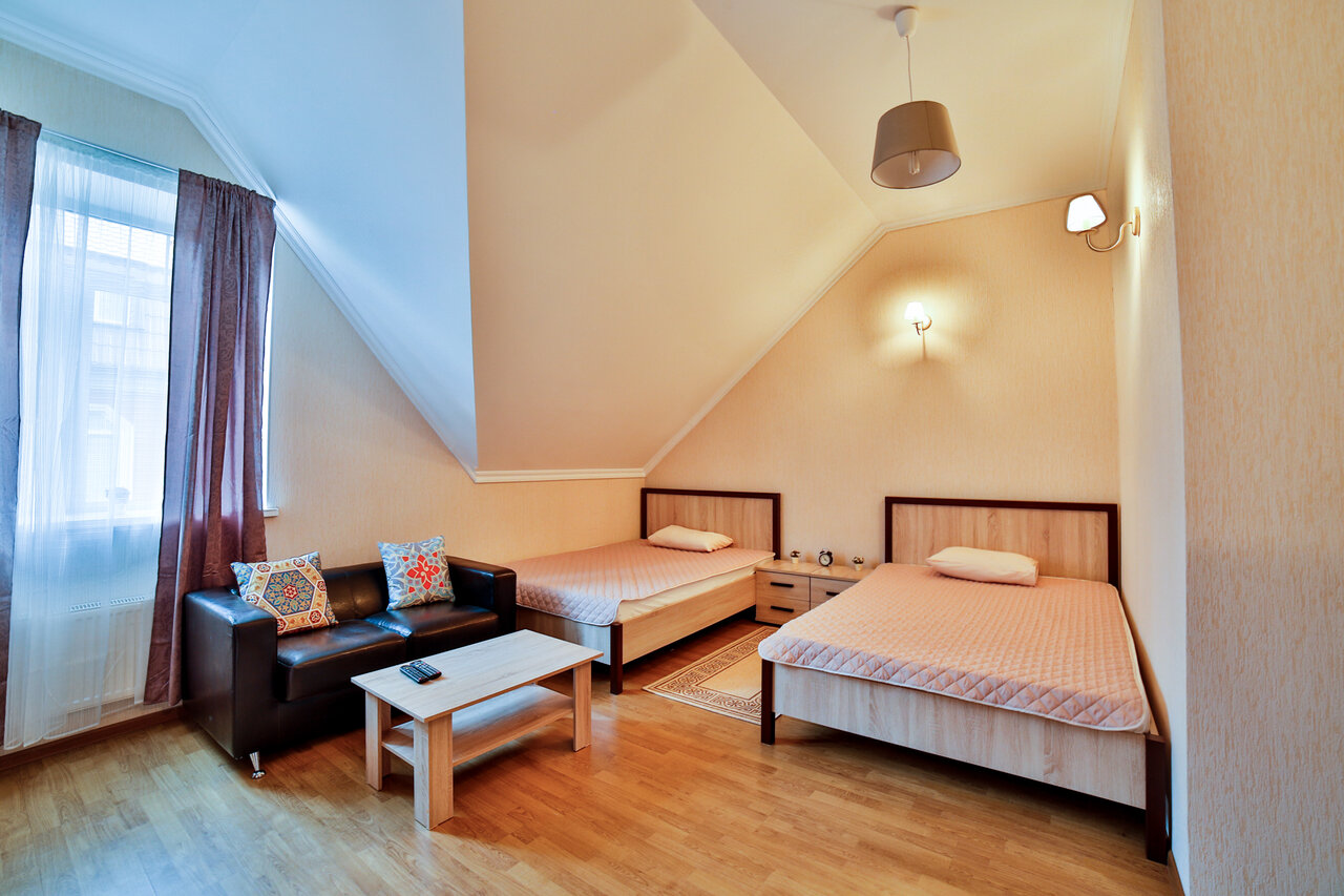 Первый раз брали два номера в основном здании отеля. Устроило абсолютно все. Второй раз втроем заселились в апартаменты и были немного разочарованы. Поломанная тумба, третье место в виде раскладушки, некомфортно из-за отсутсвия полноценного окна. Зато место очень приятное, завтраки устраивают. Для себя отметили, как вполне подходящий вариант