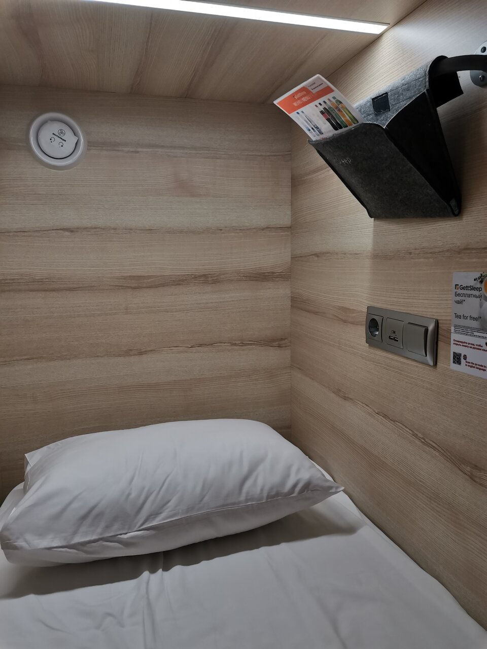 Отличный вариант поспать между рейсами. Постель чистая, всё как в описании WiFi работает, розетки работают