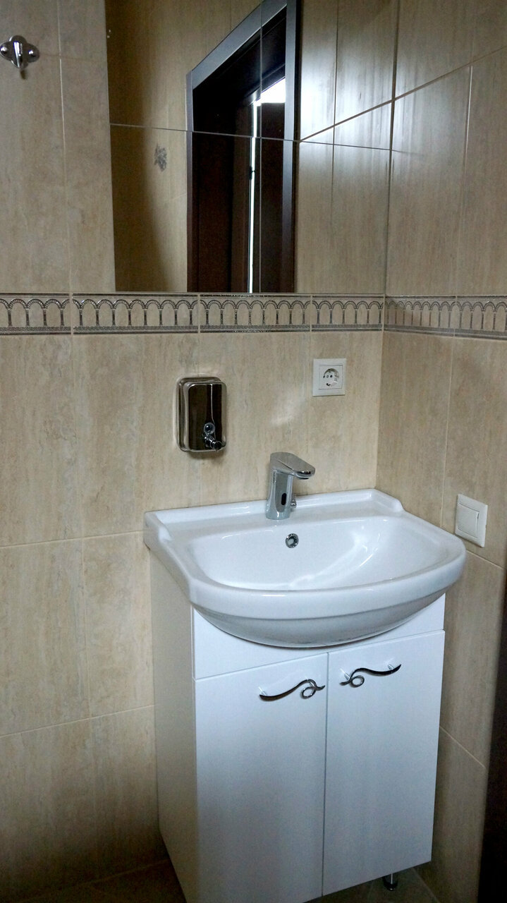 Чисто. Удобно. Все устроило. Туалет, душ, микроволновка и чайник ‘на этаже’.