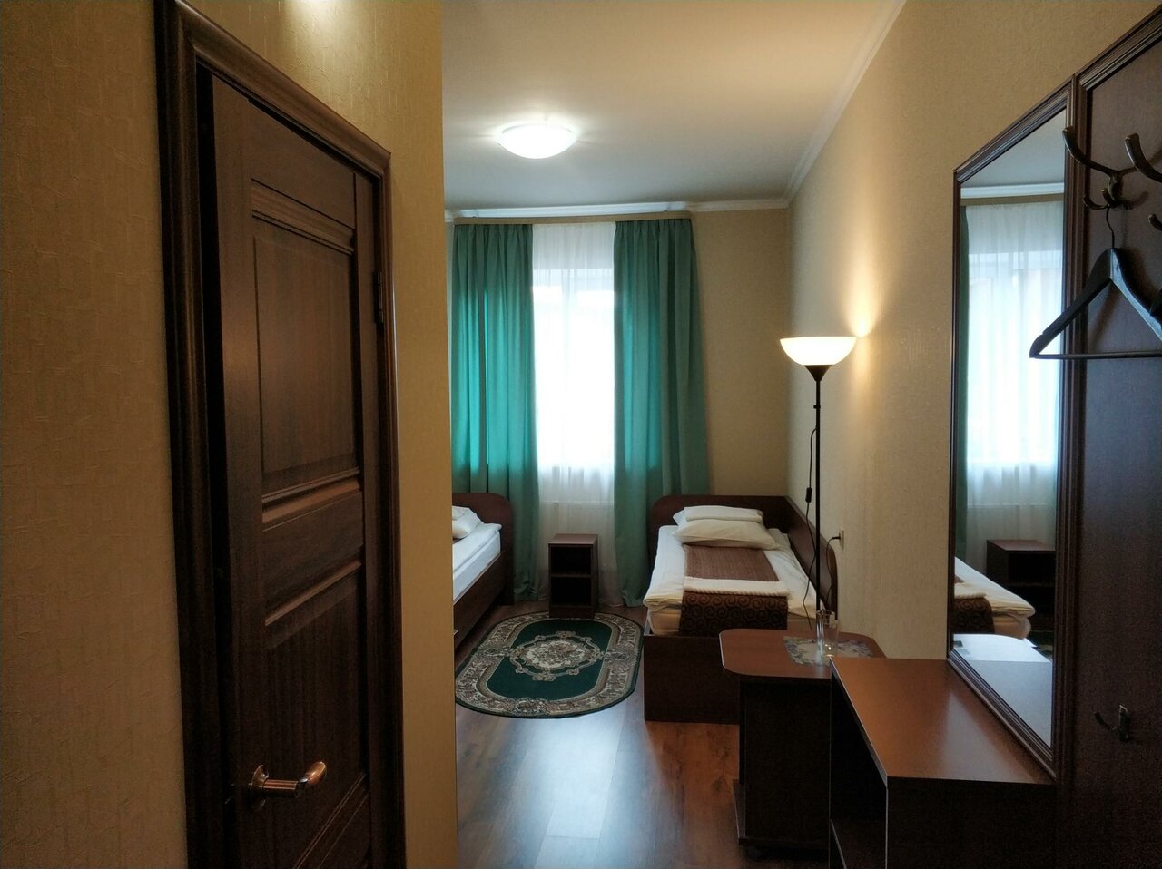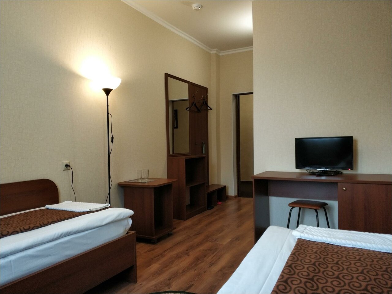 Номер на 2 персоны с телевизором и санузлом, бесплатный Wi-Fi, 2 раздельные односпальные кровати. Заезд с 14:00, выезд до 12:00.