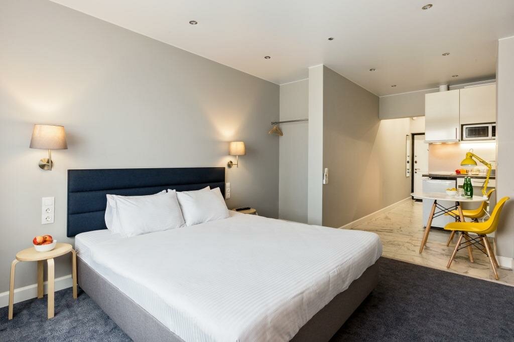 Хороший аппарт-отель, номер небольшой, но функциональный. Всё необходимое есть. Сантехника новая, посуда приличная, бытовая техника рабочая. Белье поношеное, но чистое.