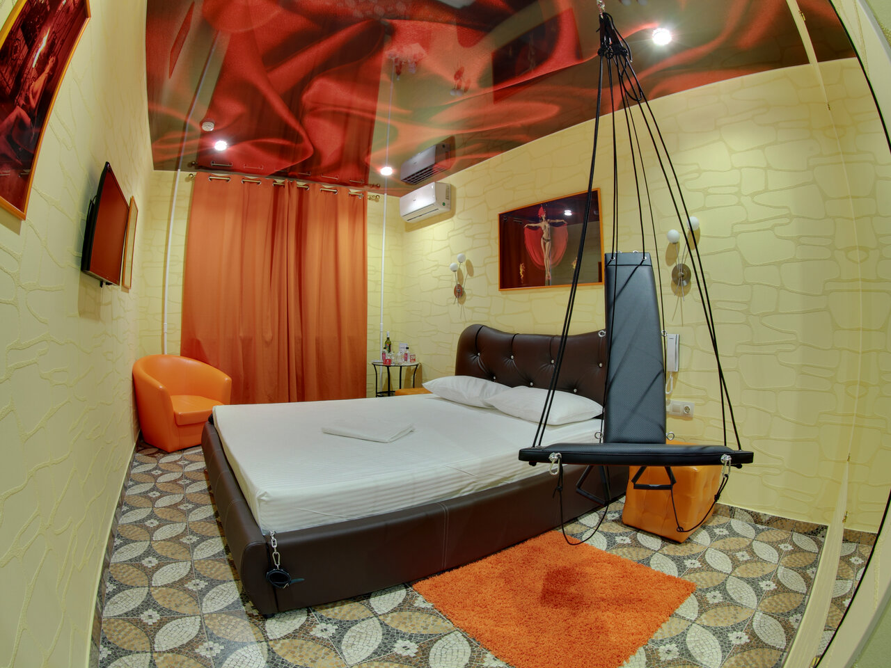 Из плюсов, сама идея, из минусов, душ тек, в номере прокурено, наручники не держут, пора обновить, админисьраторы очень чуткие