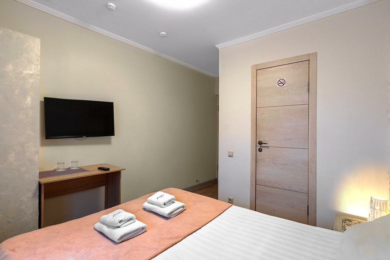 Нам с дочерью довелось переночевать в этом отеле одну ночь (бронировали только на сутки 17-18 июля). Персонал очень внимательный и отзывчивый! Большое спасибо, что вы неравнодушны к чужим проблемам. Жалею, что не запомнила имён… В отеле довольно таки чистенько и аккуратно, видно, что стараются люди))! В номере тоже порядок, постельное бельё и полотенца идеально белые. В санузле душевая, унитаз и небольшая раковина. Всё тоже было чистым и в полной исправности. На раковине были одноразовые шампуни и Гели для душа. Да, к стати, одноразовые тапочки тоже имелись в номере (в запечатанной упаковке). Никаких лишних звуков, тишина и покой! На двухспальной кровати удобный матрас, не промытый! Единственное, нас немного смутил небольшой запах канализации при заселении, но его уже не было через некоторое время. В целом, остались положительные впечатления от данного места!!! Спасибо персоналу за гостеприимство!