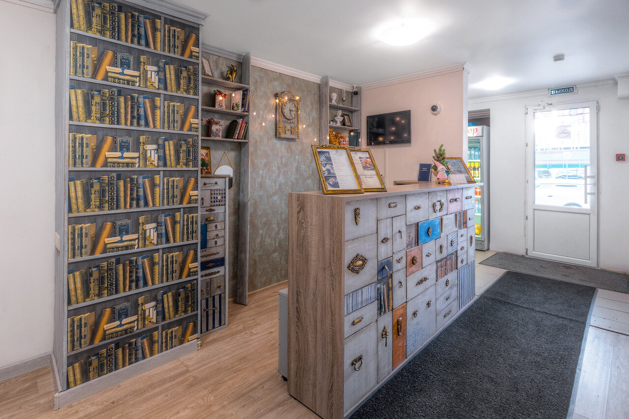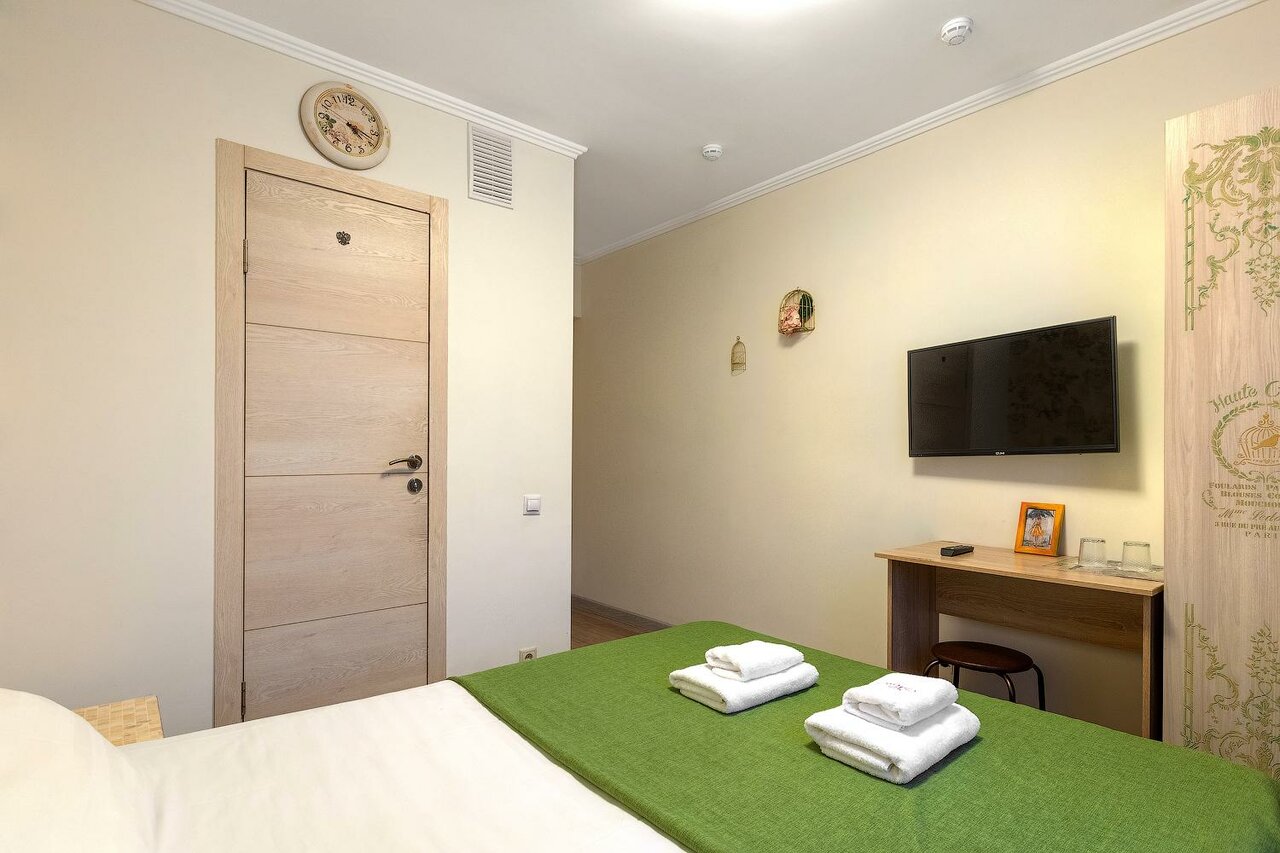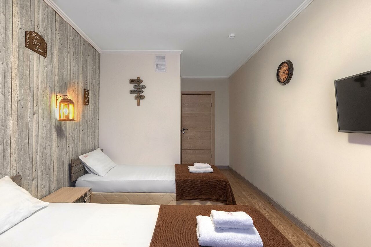 Хорошее место по соотношению цены и качества. Приветливый персонал. В номере чисто, много места. Удобные кровати, немного жесткий диван. Полотенца, шампунь, гель для душа, зубная щётка. Чайник, вода, стаканы. Гостиница расположена в жилом доме. После 10 вечера режим тишины, спали хорошо, никто не тревожил. Есть общая кухня с холодильником, посудой и микроволновой. Есть проблемы с парковкой, т.к. спальный район и все заставлено, но рядом есть платная, можно договориться.