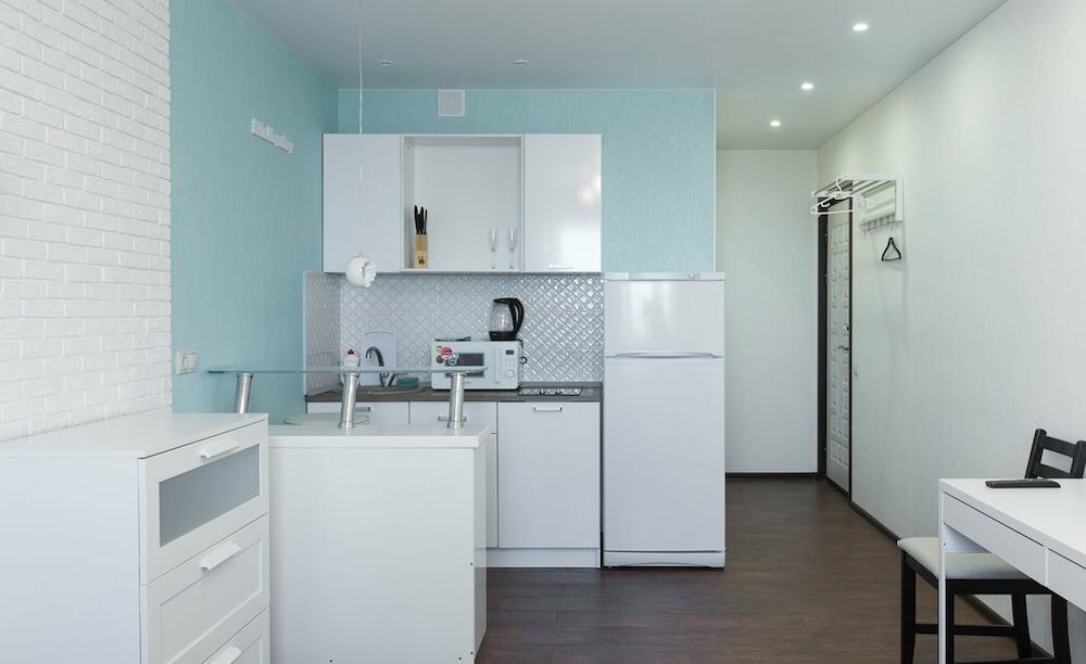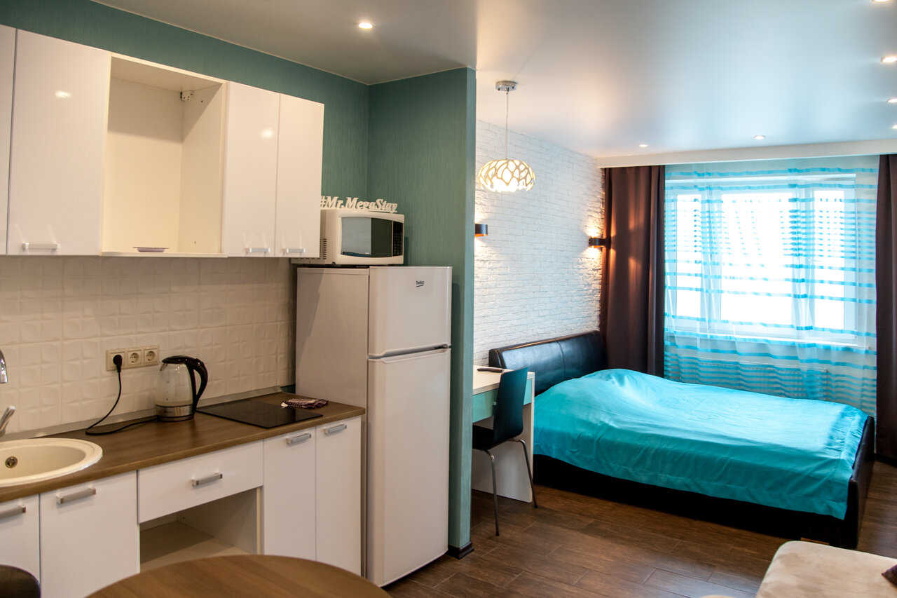 При аренде нашей квартиры-студии вы получаете доступ к полностью оборудованной бытовой техникой, включая холодильник, плиту, микроволновку, чайник, утюг и wi-fi