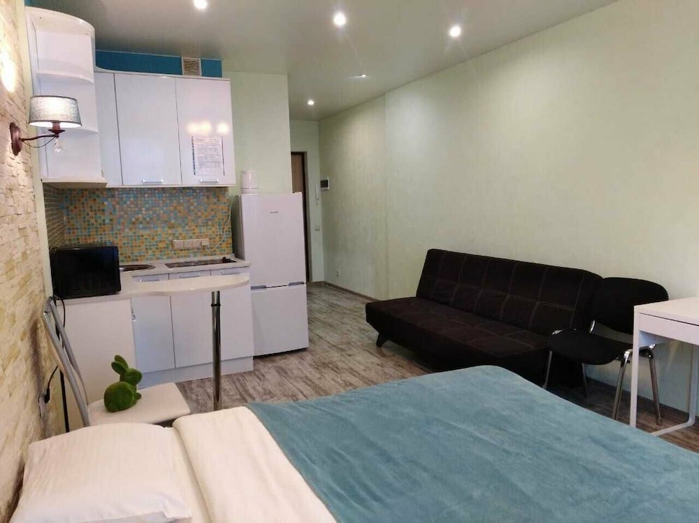 Уютная студия с удобствами и кухней. Идеально для комфортного отдыха. Рядом с торговым центром 'Мега' и парком.