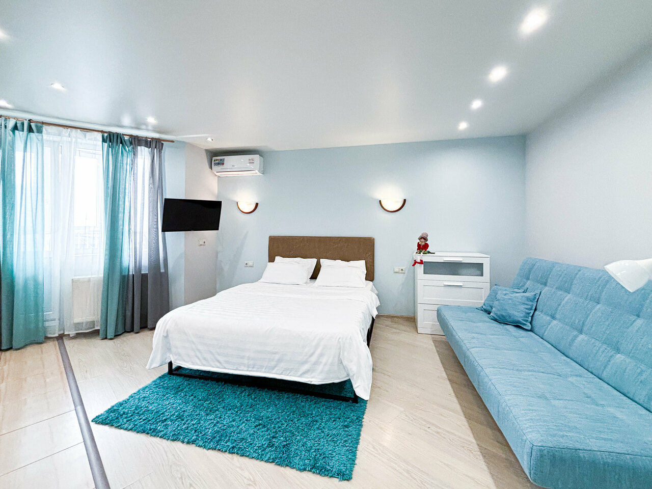 Уютная студия с двухместной удобной кроватью с посуточной арендой.Идеально подходит для комфортного отдыха или деловой поездки.В квартире имеется: холодильникплитамикроволновая печьчайникполный набор посуды для готовки