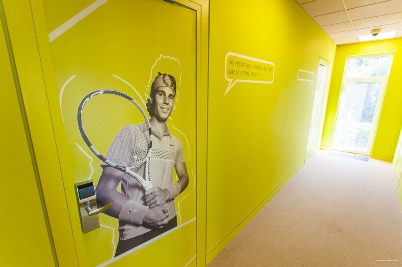 - Наличие бассейна и сауны.; Круглосуточный присмотр за детьми (администраторы на этажах).; Удобное расположение в парке Л. Толстого.; Отзывчивый и внимательный персонал.; Хорошая инфраструктура для обучения теннису.