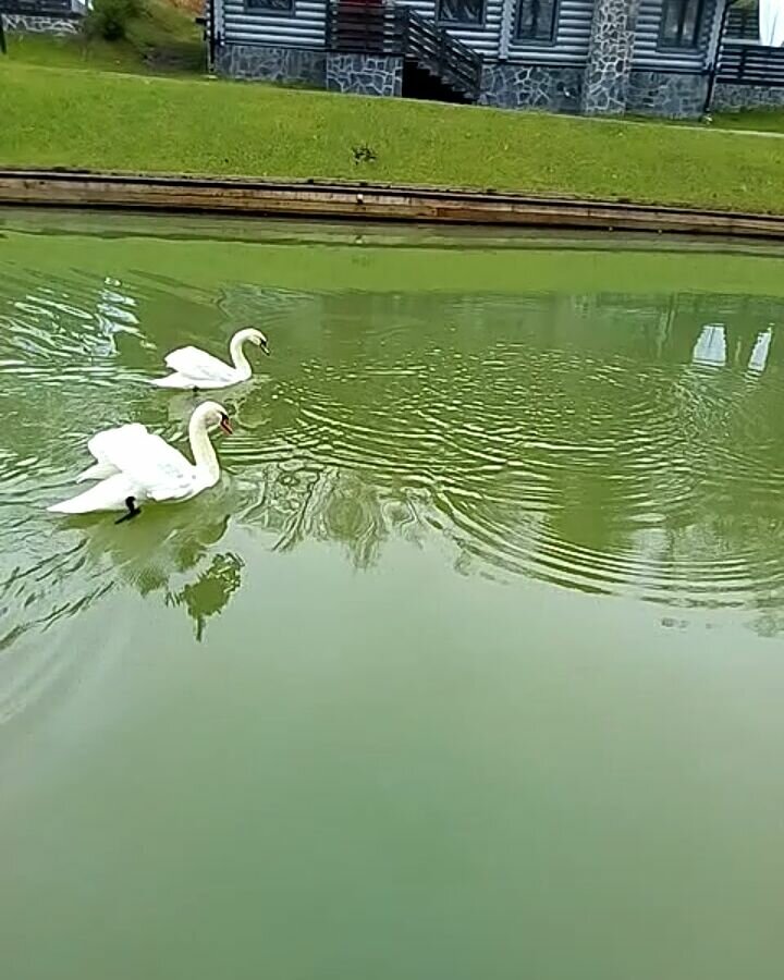 Очень крутое место для аренды домика! Живые лебеди, природа! Восхитительно