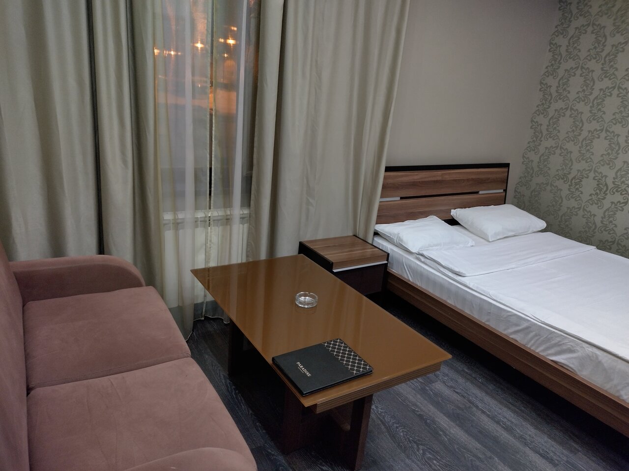 Очень шумный отель, для шумных компаний и любителей караоке, сауны/бани. Полноценно выспаться или отдохнуть в данном отеле не выйдет. Караоке и музыку слышно в номере. За отелем стоянка городской спецтехники. До поздней ночи играла музыка на первом этаже, с 6:00 начали заводить трактора в 3х метрах от окон. Попытка закрыть окно не увенчалась успехом, окно было сломано и плотно не закрывалось. Номер был чистым, персонал вежливым. В наличии: одноразовые наборы, чистые полотенца, тапочки.