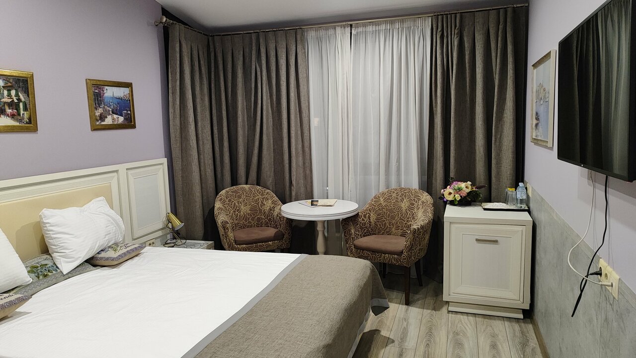 Достаточно приличный отель. В номерах чисто, регулярно убирают. Был на третьем этаже — шума с улицы не слышно. Можно регулировать тепло на батареях. В ресторане очень вкусная еда. Администратор Анна доброжелательная, всегда помогает, если возникают сложности.