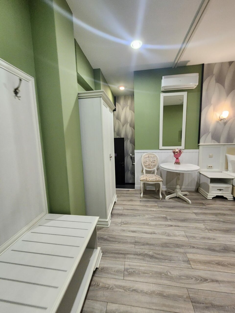 - Неудачное сочетание интерьера (зелёный Паллас с розовыми стенами)