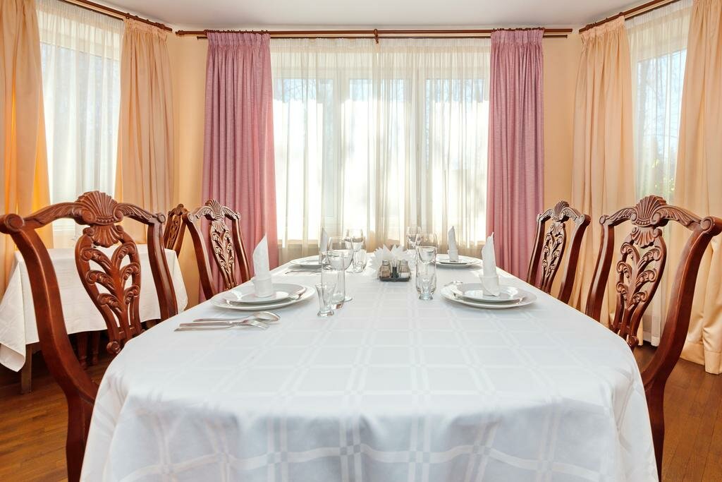 - Зелёная территория, тихо и спокойно.; Отличная русская баня на дровах.; Хорошая кухня, разнообразные блюда.; Чистый воздух, красивая природа (озеро, лебеди).; Хорошие условия для спорта (теннис, бадминтон, бокс).