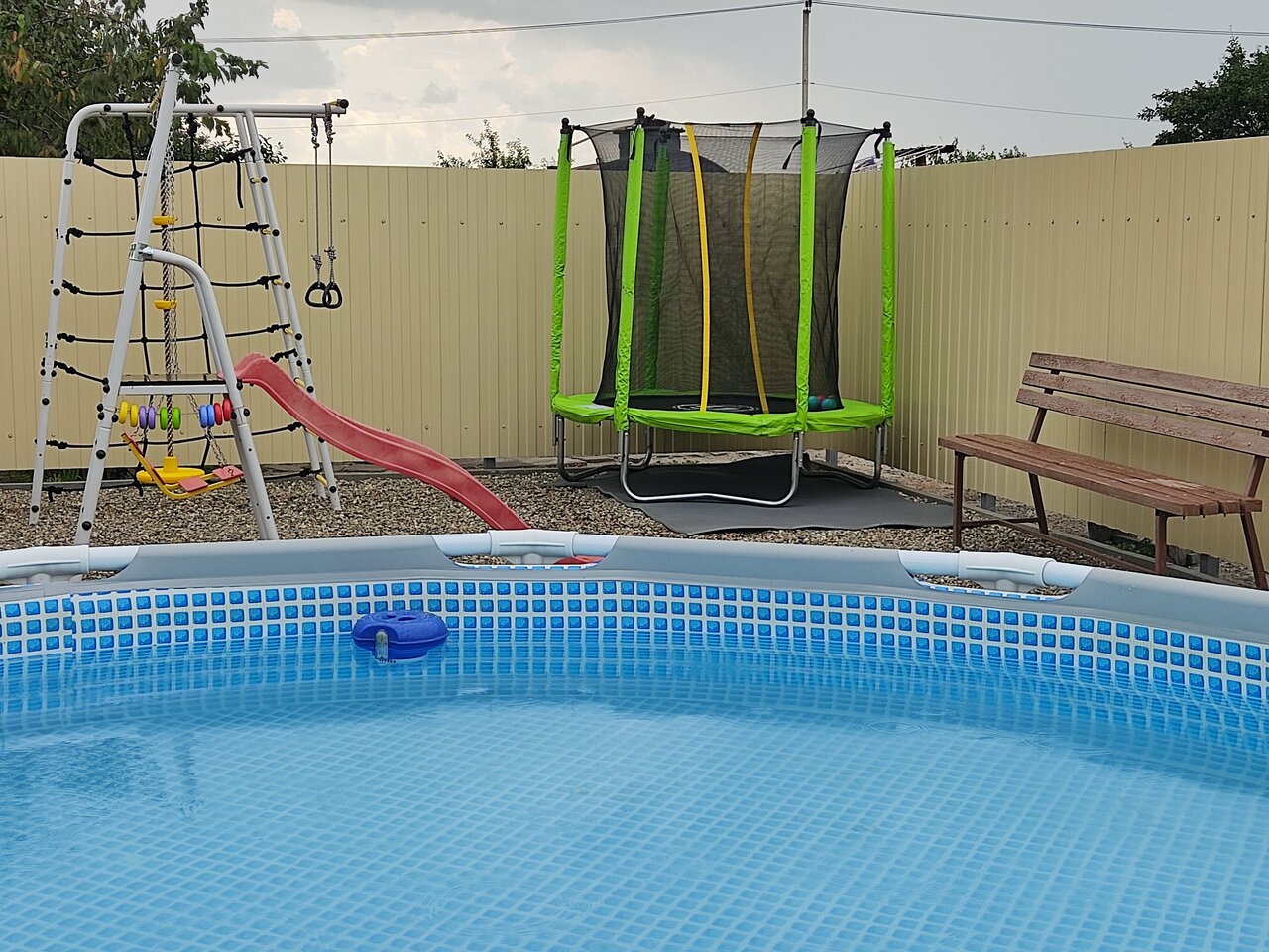 - Бассейн, гамаки, качели, мангал, коптильня.