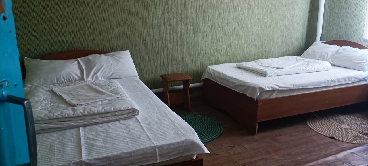 Это была вынужденная остановка среди ночи и тот случай когда я подумал что если бы я встал на ночлег в палатке то это было бы и получше даже, но тут подкупила цена т.к меня поселили одного в трехместный номер за сумму в одну треть от стоимости номера, в общем то это добавило звезду к одной звезде что я оценил данное место. По условиям: в номере нет ничего из удобства кроме двух табуреток, вешалки с зеркалом, полочки у розетки и санузла (и то в раковине только холодная вода), палитра бюджетной отделки разница с местами ремонта где мастер явно не старался сделать красиво, ну и ко всему в комнате были сожители в виде ползучих, благо они тихие и спать не мешали. В общем я это место не рекомендую, если только у вас нет крайней необходимости в остановке именно здесь и сейчас.