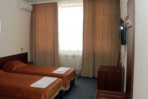 Остановились по пути на море в этом отеле,были уставшие и не выбирали,был 3х местный номер один свободный,все было занято в ночь на 1 июля. Плюсы-возле трассы,рядом заправка,на этом всё. Очень скромно и грязно,обои заляпаны и отходят,вода ржавая (постирали ребенку белые трусики с мылом,пришлось выкинуть,они стали рыжие). Душевая в плесени,страшно дотронуться ( Вода плохо уходит( Поскольку была ночь,уже легли спать,поспали 6 часов и бегом оттуда!!!! Даже зубы не чистили,вода ужас!!!! Не понимаю, то ставит 5 звезд ,возможно есть другие номера и другая вода!