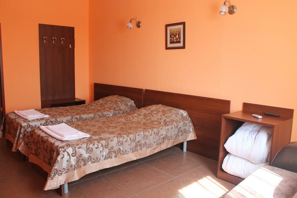 Мы путешествовали семьёй впятером. Заехали случайно, так как информацией о месте не обладали, да и с дороги не особо заметно. Но, красиво оформленная прилегающая территория привлекла внимание и пятиместный номер в наличии (что нечасто встречается в отелях) сыграл свою роль. Отель понравился. Номера чистые, в меру уютные, на разнообразный выбор, цены демократические. Персонал вежливый. Холодная и горячая вода есть. Кровати удобные. Парковка вместительная. Есть кафе, напоминающая столовую. Ужинали в ней я и старший сын: салат и отбивная с гречкой. (правда, через день у меня и старшего сына пришла диарея, у сына с высокой температурой, и, проведя беглый эпидемиологический анализ, пришёл к выводу, что наиболее вероятной причиной диареи явился визит в кафе)