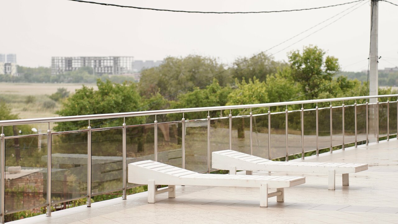 Территория площадью 3000 м² включает зоны отдыха, шезлонги и площадку для пикника. Номера оснащены кондиционерами, телевизорами, холодильниками и санузлами. Даты заезда/выезда: 14:00 и 12:00 соответственно.
