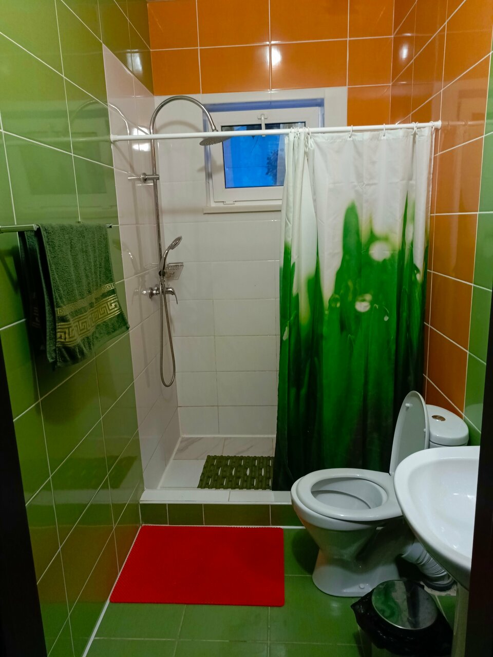 Мы с семьёй из четырёх человек занимали однокомнатный номер. За ночь заплатили две тысячи рублей. Большие комнаты,широкие кровати,телевизор,кондиционер. Есть душ,туалет. Холодильник и кулер в холле. Чисто. Рекомендую.