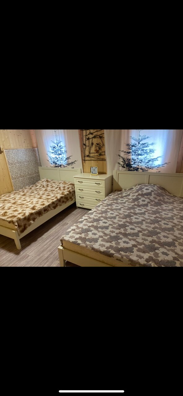 Домик на 5чел с одной спальней(две двухспальные кровати)и диваном на кухне,кухней сан узлом душевой и русской баней(оплачивается отдельно).своя закрытая территория с мангалом и беседкой.с видом на реку