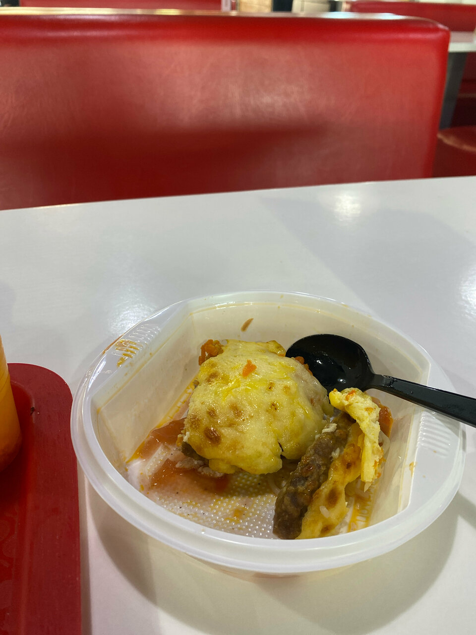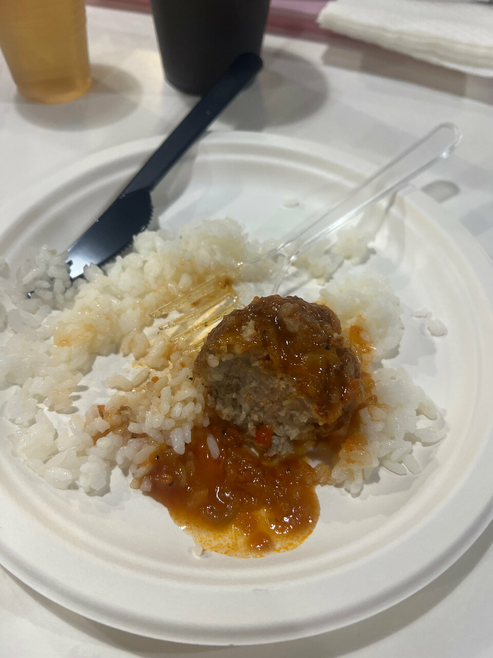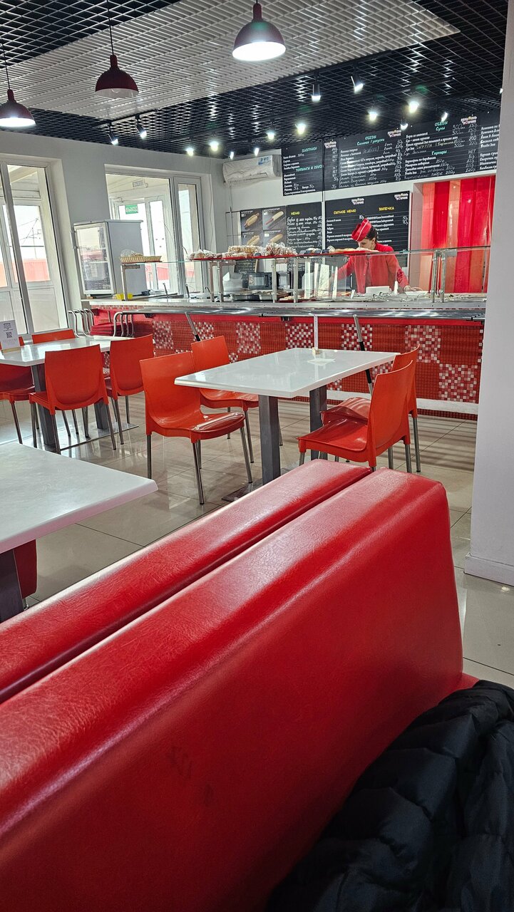 Отвратительная еда. Подлива которая шла к фрикаделькам была ужасно будто просрочена. Все холодное, цены высокие. Столы грязные, маленькие порции