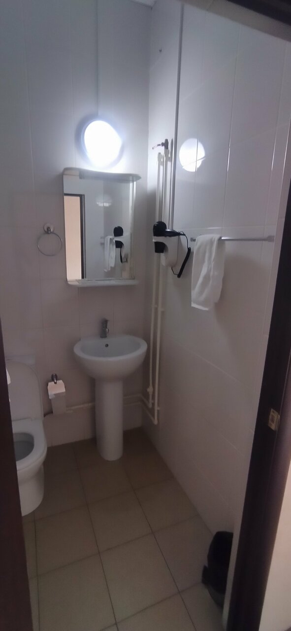 Гостиница на твердую тройку. Остановились в четырёхместном номере без питания за 3800₽. Не стоит своих денег. Номер полупустой, не хватает мебели. Нет ни стола, ни стула, ни шкафа для одежды, ни полок, всего 1 крючок и 1 вешалка на четверых (!) Вода еле теплая. В туалете грязный коврик и треснутая плитка в душевой. Матрасы неудобные. Из плюсов: чистое постельное белье, просторно. В столовой мухи активно наседают на еду, не стали испытывать судьбу. Сюда больше не заедем.