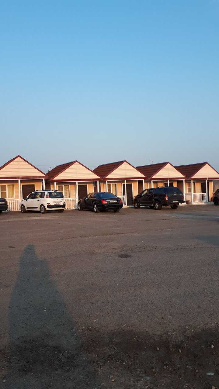 Домики по пути на море. Останавливались там по отзывам, но хочу сказать в домиках чистелько, есть горячая вода, телевизор, кровать и стол и все! Постельное белье дешевенькое (синтетика), территория не ухоженная, но рядом с трасой м4 . В домике две односпальные кровати и 1 двухспальная, цена за домик в августе 2023 года была 3 тр.