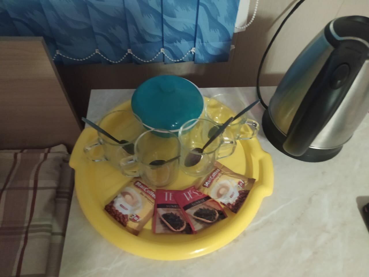 - Наличие чайника, чая/кофе, полотенец.